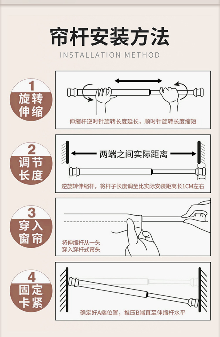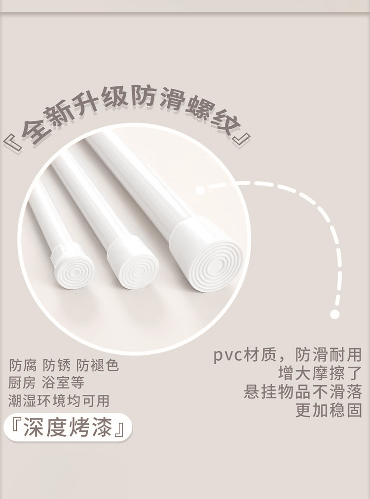 Утолщенная телескопическая штанга из высокоуглеродистой стали без сверления для дверных занавесок, штор для душа, домашнего хранения, оптовый производитель безгвоздевых штанг