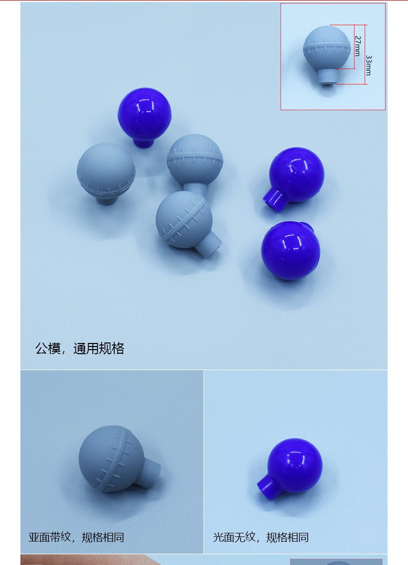- 此吸球适用对象是成人,吸球中部带齿痕,尺寸为27mm, 可配单边、双边、多功能五金底座,拆卸方便、卡位精准、不易脱落;