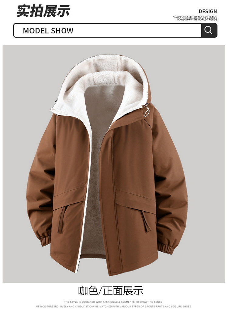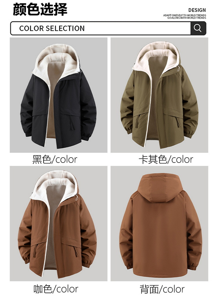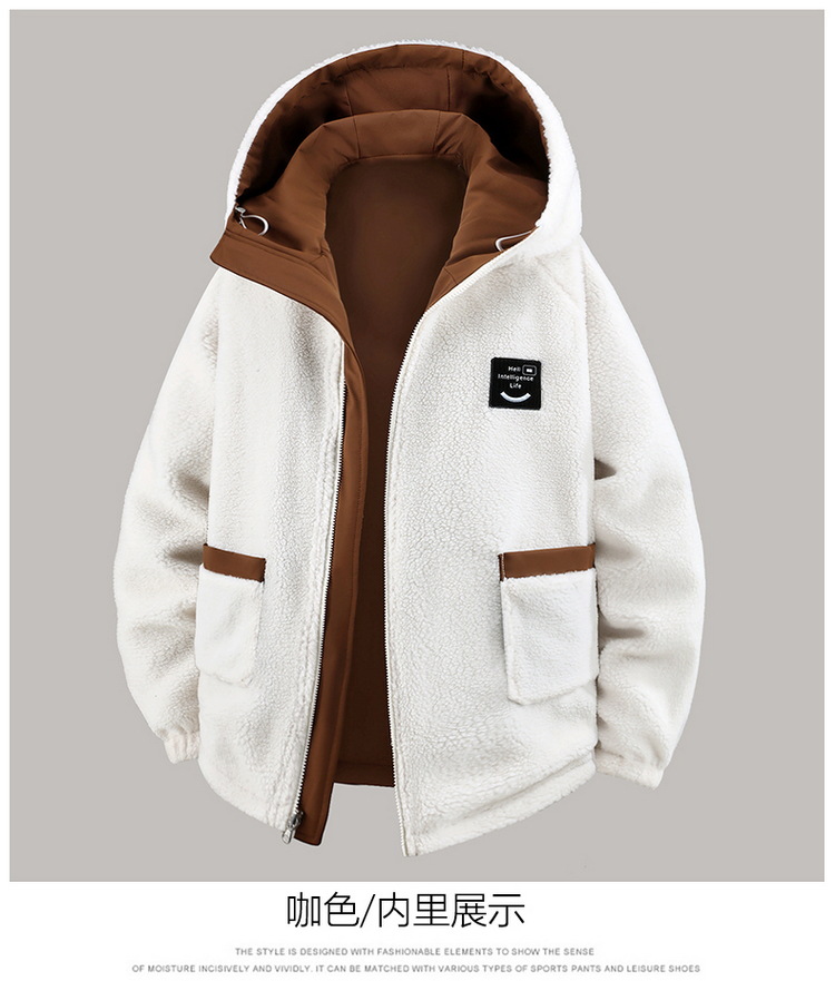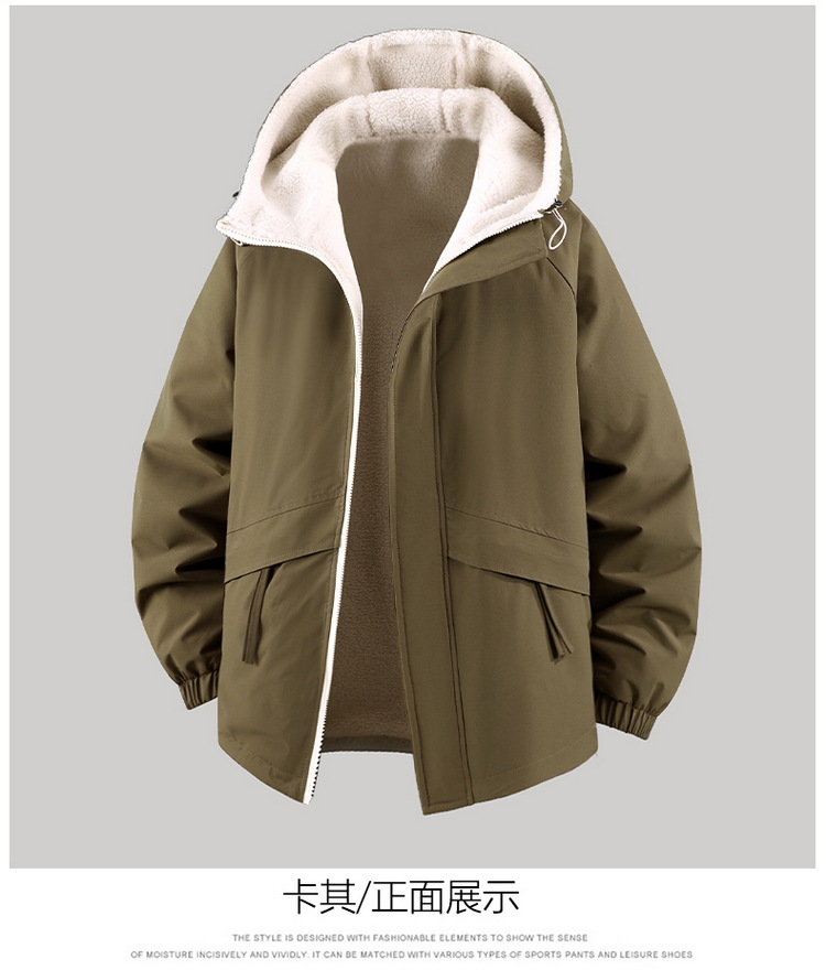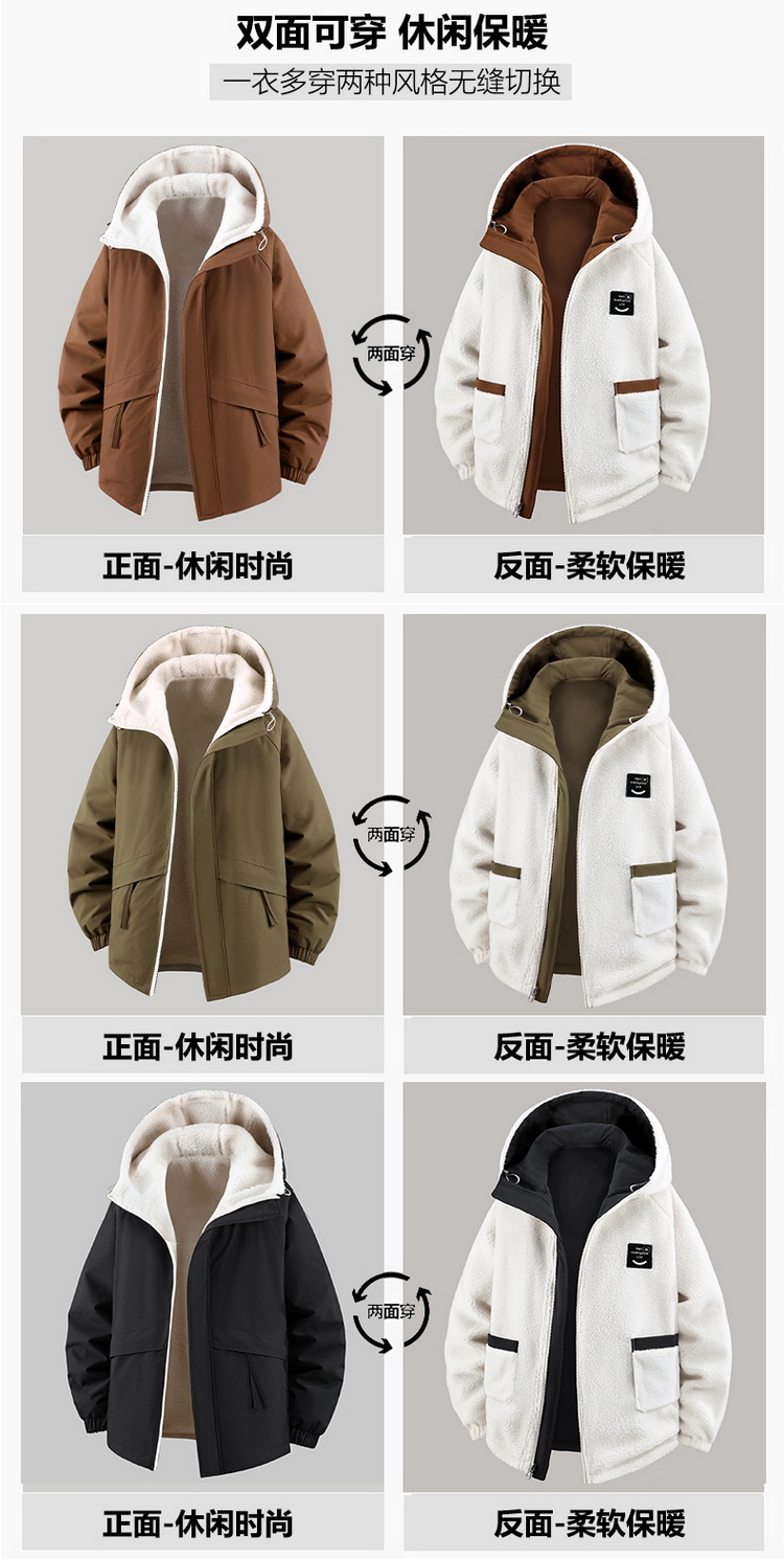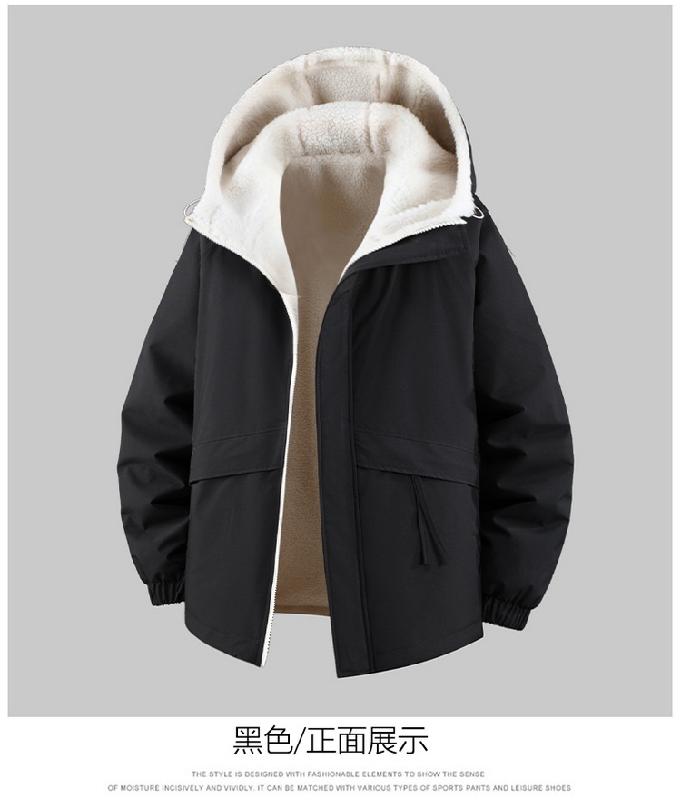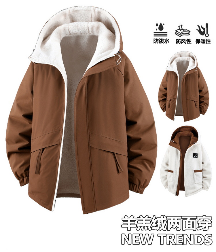Куртка из овечьей шерсти больших размеров для мужчин зимняя с флисовой подкладкой свободная повседневная с капюшоном реверсивная ветронепроницаемая