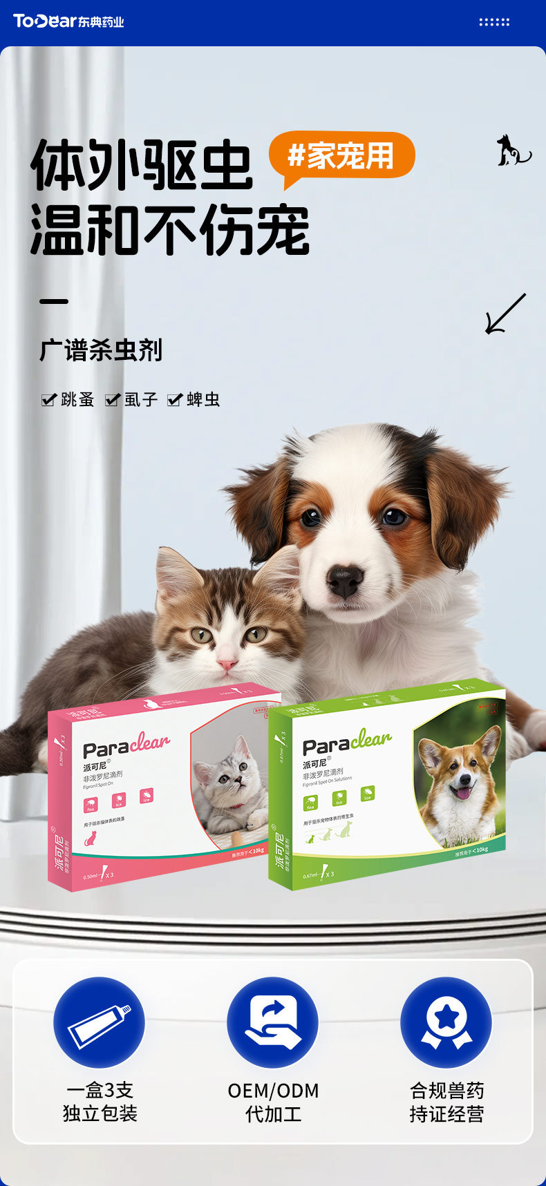 Спрей для удаления клещей и блох с внешним дегельминтизирующим эффектом для собак и кошек, оптовая продажа