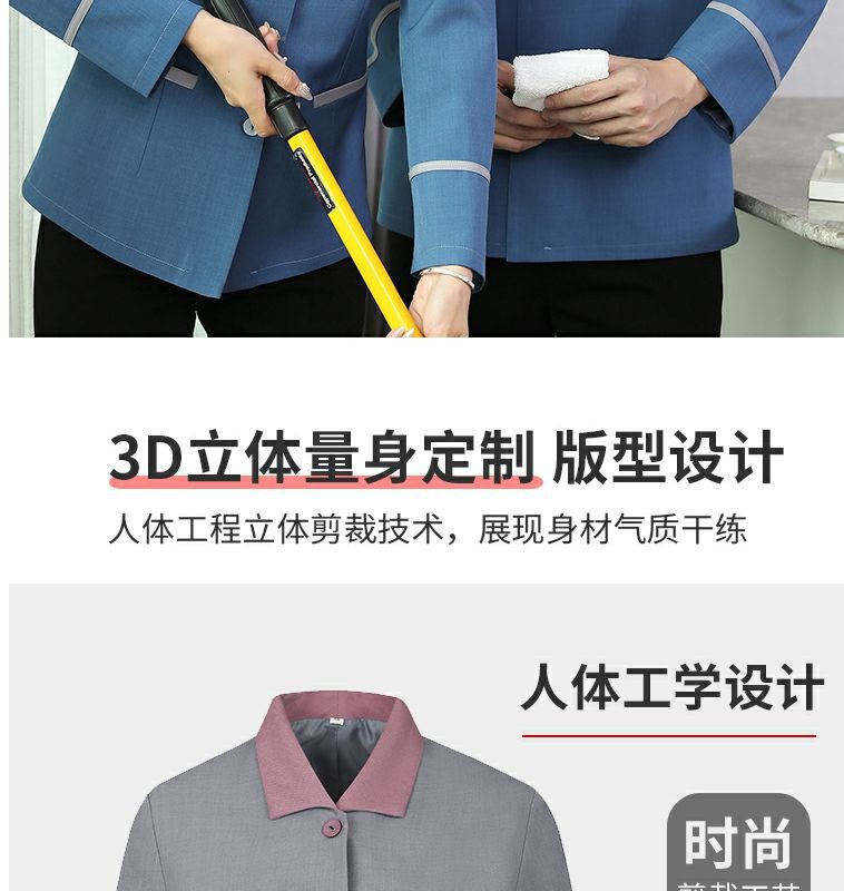 Форма для уборщиков с длинным рукавом для мужчин и женщин в управлении недвижимостью, сообществе, отелях, гостевых домах, уборке комнат и гостиничном обслуживании, осенне-зимняя форма