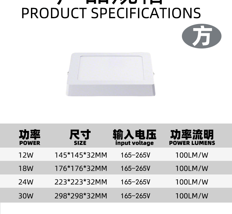 ![]() | 6500k (cool white) | Square surface mounted 30w | ¥15.8 / ≈ 191 ₽ | 999999 | 5992229325146 |