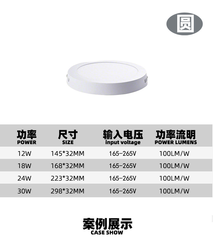 ![]() | 4000k (positive white) | Round surface mounted 30w | ¥13.2 / ≈ 159 ₽ | 999999 | 5992229325135 | |
