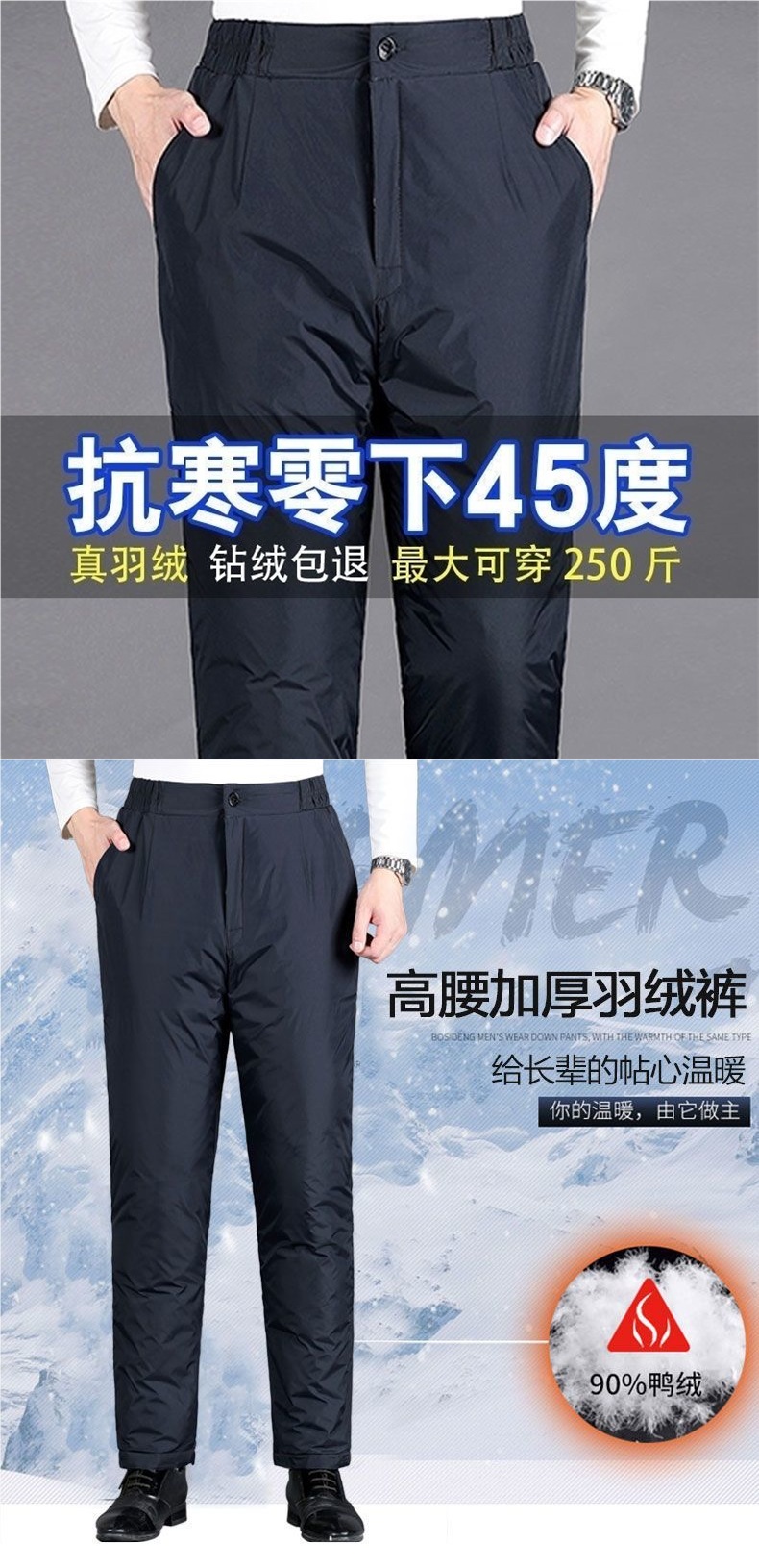Мужские брюки из перьев, утолщенные, холодостойкие, ветрозащитные, теплые хлопковые брюки для людей среднего и пожилого возраста, большие размеры, с высокой талией, в наличии из кожи