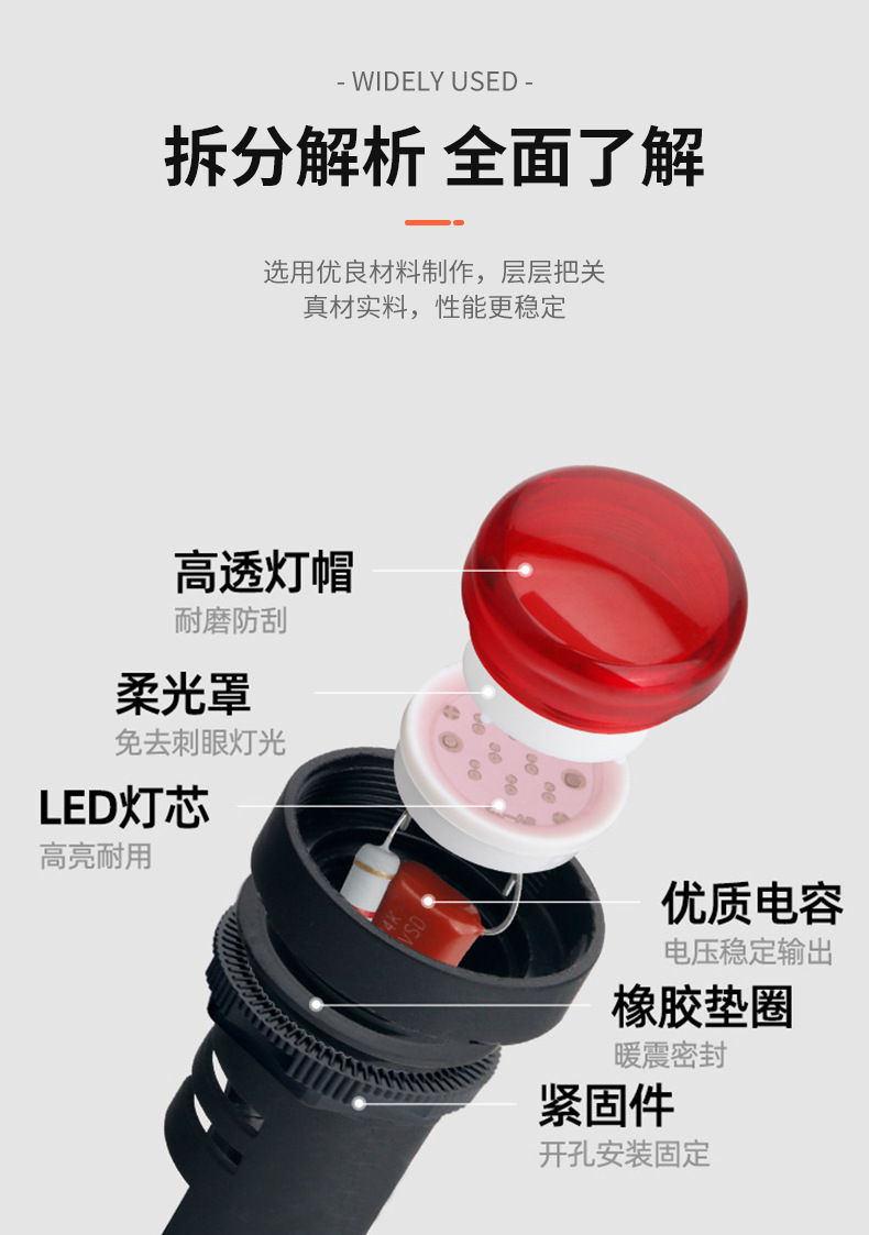 Светодиодный индикаторный светильник Ad16-22Ds чистый красный зеленый желтый синий белый открытое отверстие 22м M220V 24V