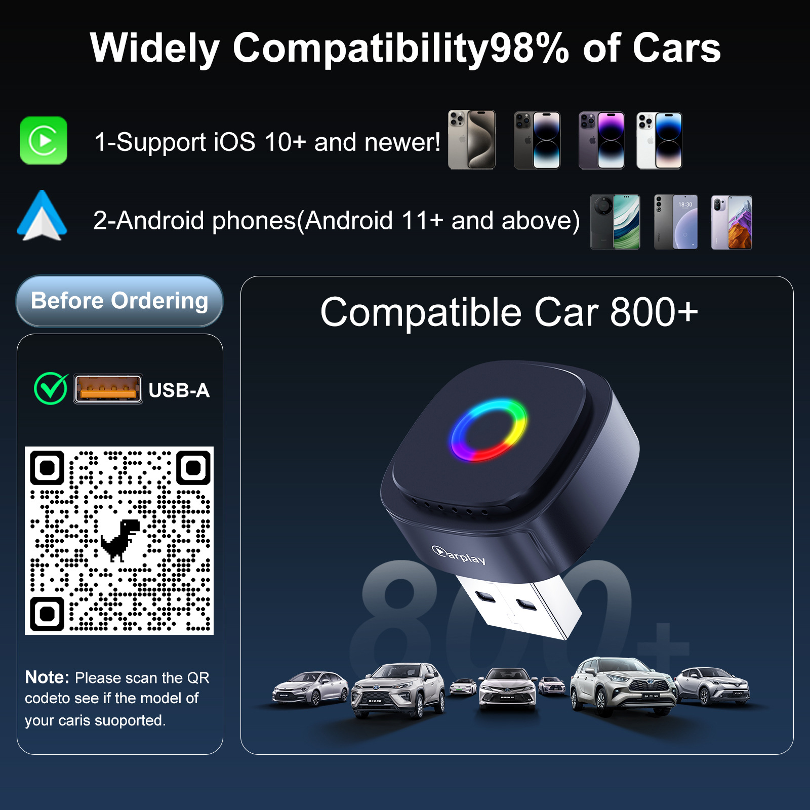 Подходит для моделей автомобилей The original car supports wired carplay/wired android auto