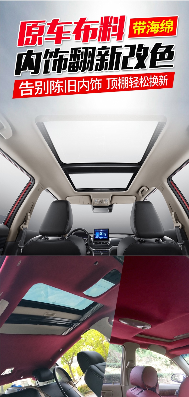 ![]() | Half a meter of original car cloth + 1 bottle of small bottle of self-spraying glue [amount for sunroof panel] | ¥36.0 / ≈ 434 ₽ | 200 | 5940908396416 | |