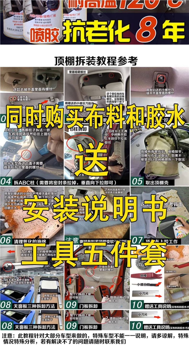 ![]() | Original car cloth 3m + 3 bottles of self-spraying glue + 1.5m self-adhesive + tools | ¥261.0 / ≈ 3 144 ₽ | 200 | 5940908396430 | |