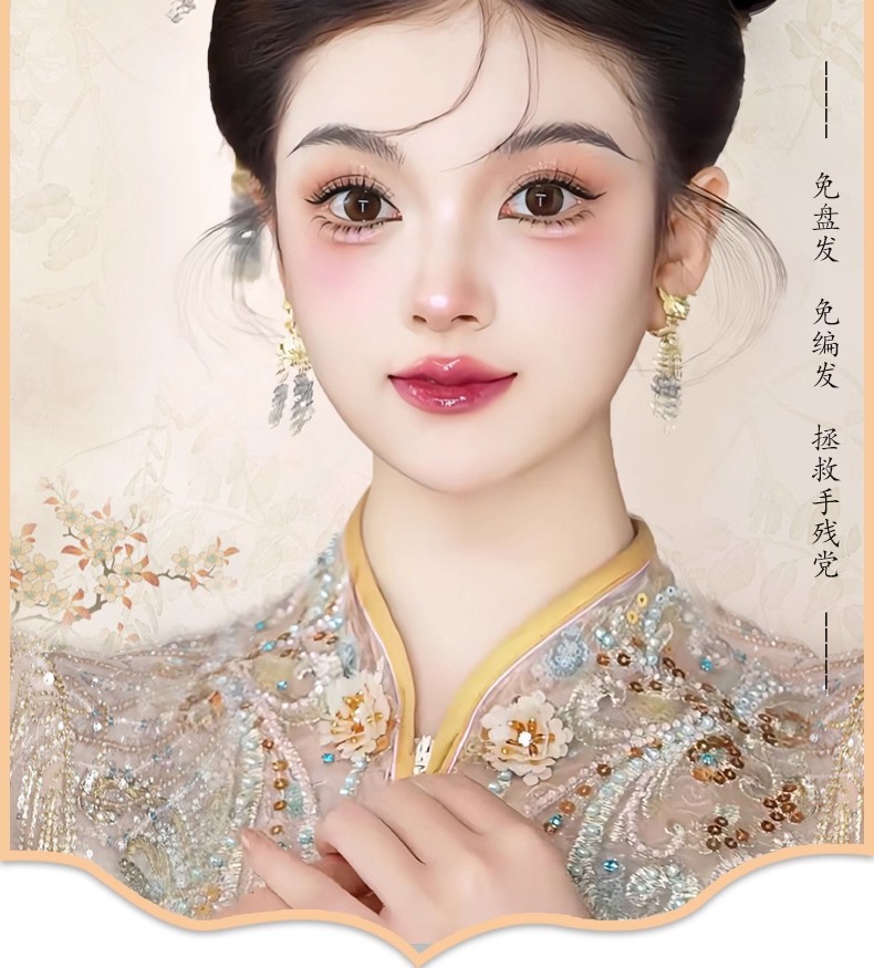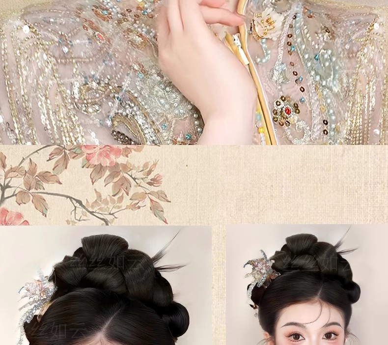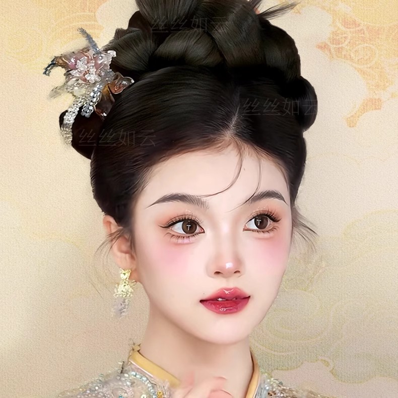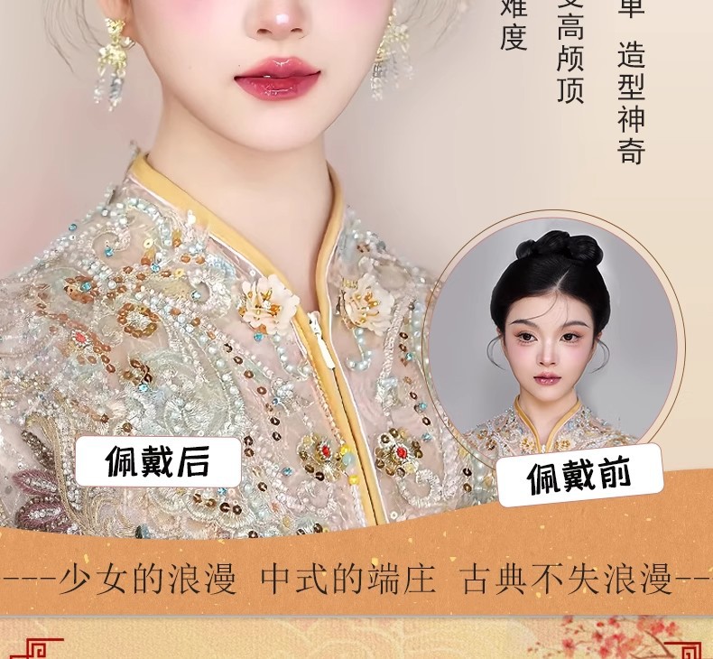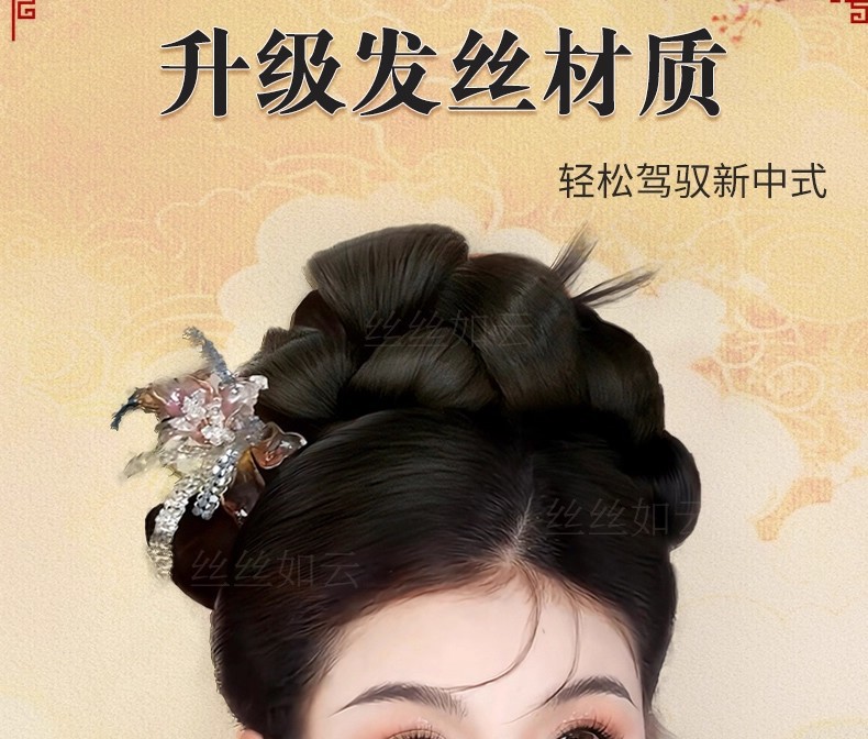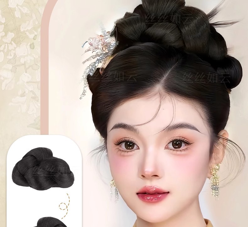 Новый китайский стиль парик в виде пучка с двойным бантом для визажистов, свадебный стиль, искусственный пучок