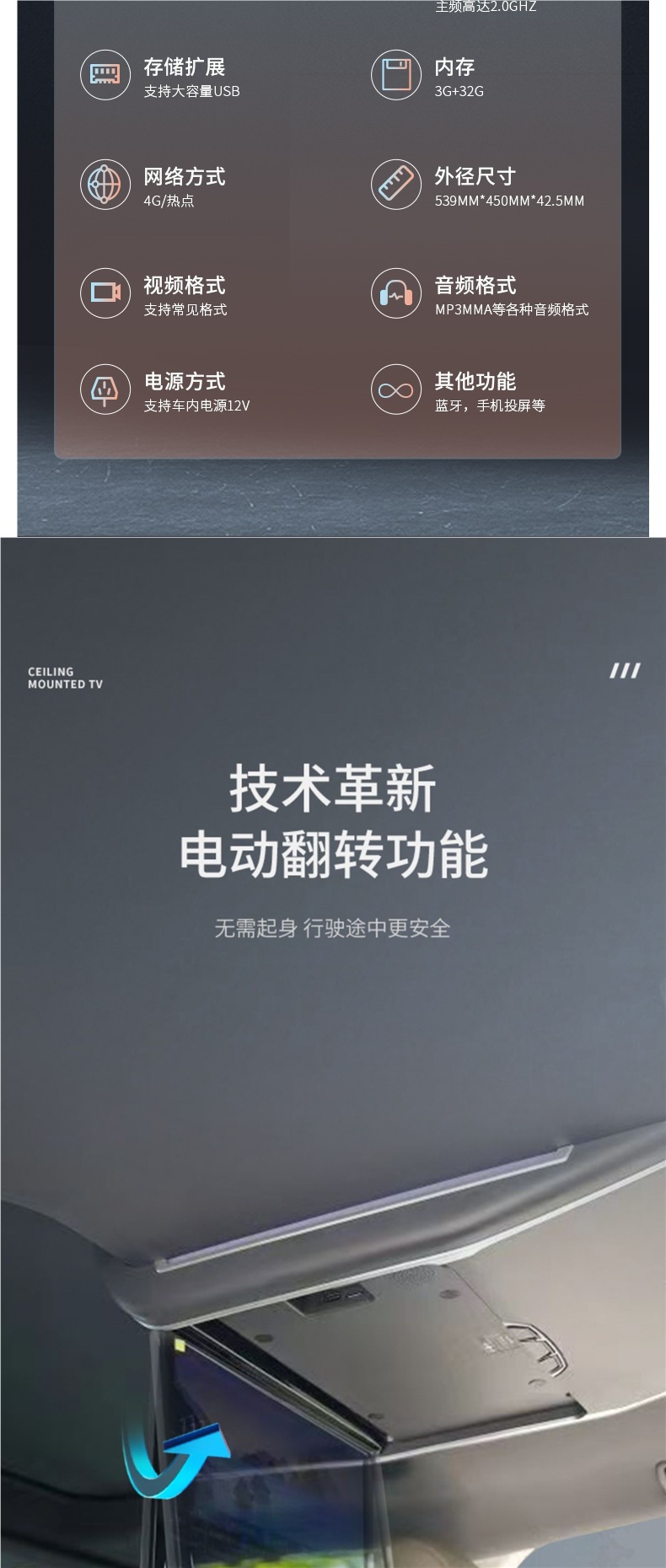 Подходит для Denza D9 Mercedes-Benz V260 Grevia Hyundai Custus Toyota Sienna, специальный потолочный телевизор