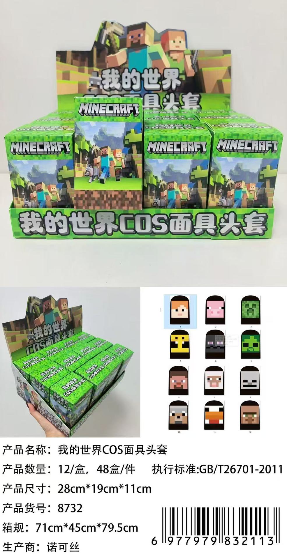 ![]() | 8732 - minecraft prank headgear blind box | 12шт: ¥3.00, 240шт: ¥2.87 | 10000000 | 5977320025574 |