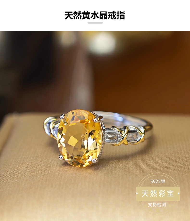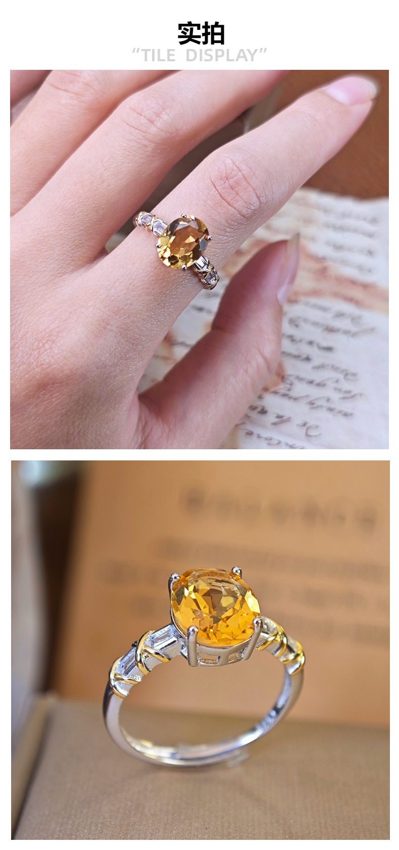 Кольцо из 925 стерлингового серебра с овальным натуральным цитрином, горячая распродажа, новый продукт, легкое для сочетания, открытое кольцо для женщин
