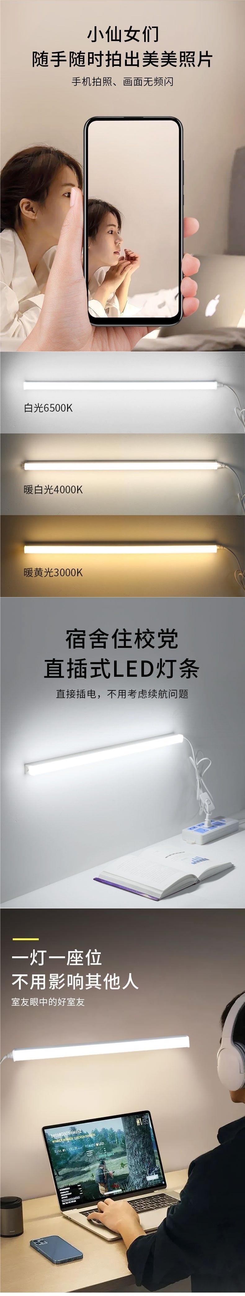 Светодиодная флуоресцентная лампа трубка прямая светодиодная настольная лампа с подключением для дома студенческого общежития