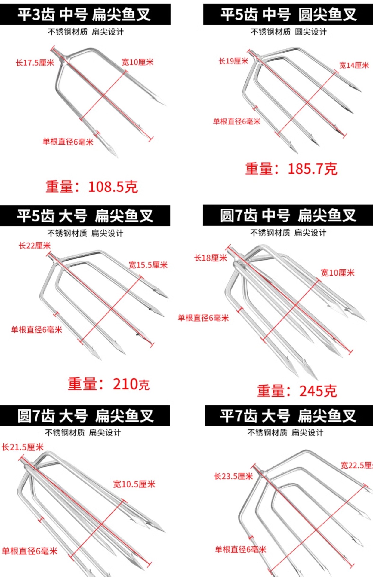 ![]() | Flat 5-tooth round tip spear head [medium size] | ¥6.5 / ≈ 78 ₽ | 88888 | 6105971958436 | |