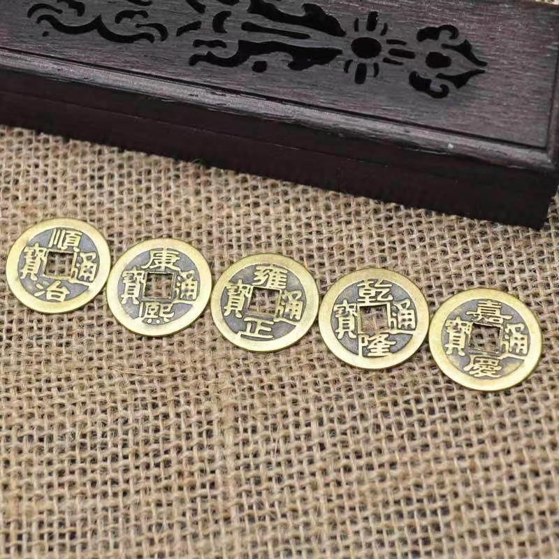 Настоящие антикварные монеты Фэншуй, деньги пяти императоров, латунные аксессуары для порога