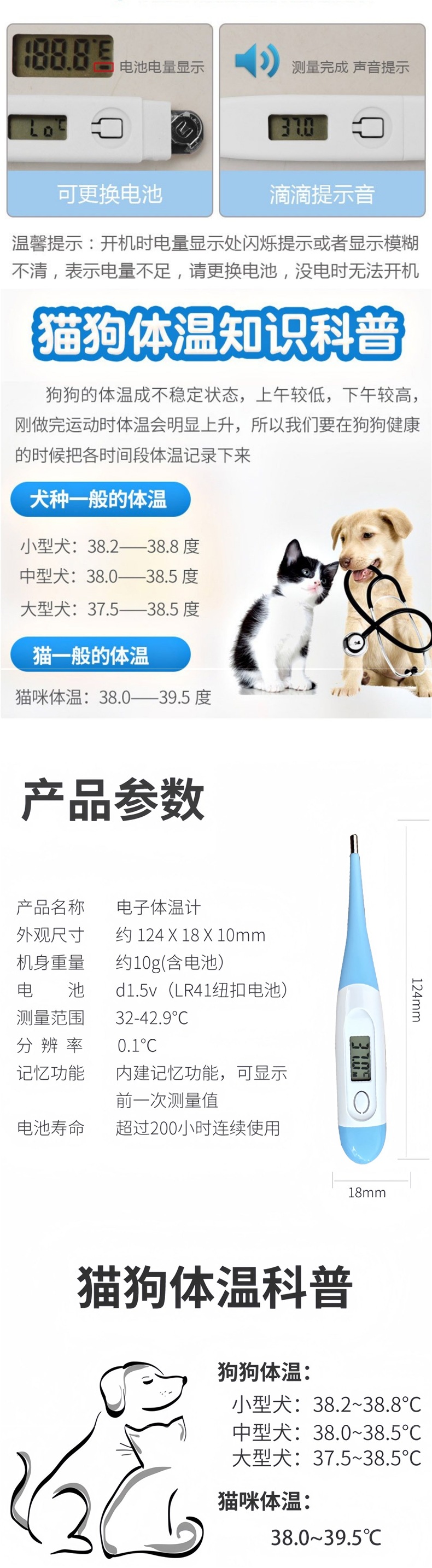 Пет термометр для кошек и собак, ветеринарный анальный цифровой термометр для измерения температуры у котят и щенков