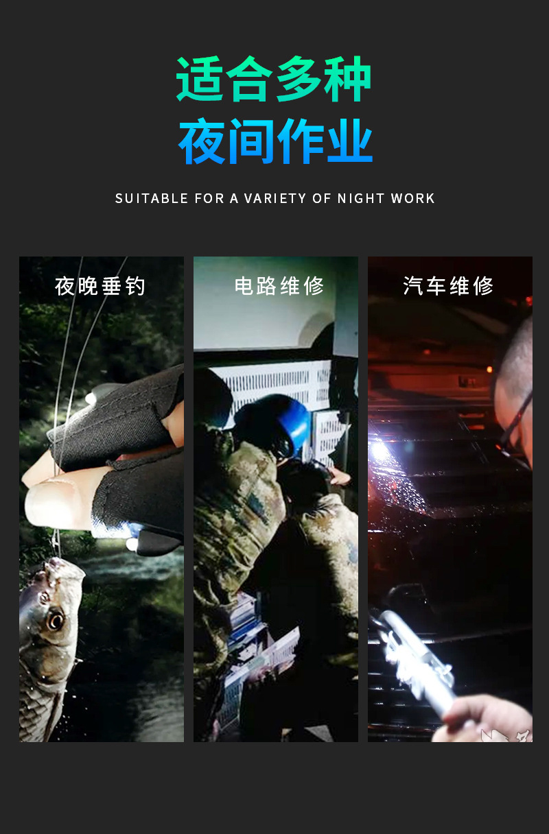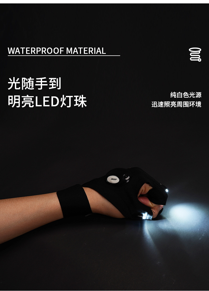 Светящиеся перчатки для ночной рыбалки, водонепроницаемые перчатки для ремонта на открытом воздухе, набор светильников для пальцев