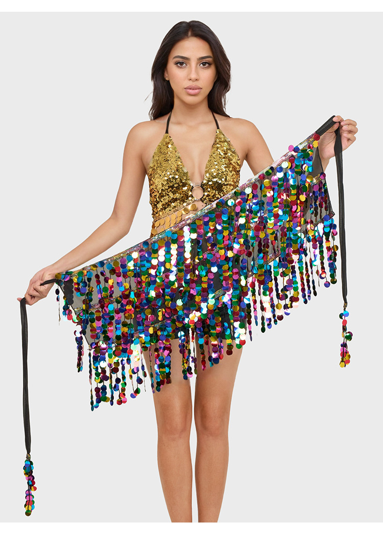 Комплект поясов для живота 2025, юбка с бахромой и пайетками для индийского танца, сексуальный костюм для восточного танца в ночном клубе