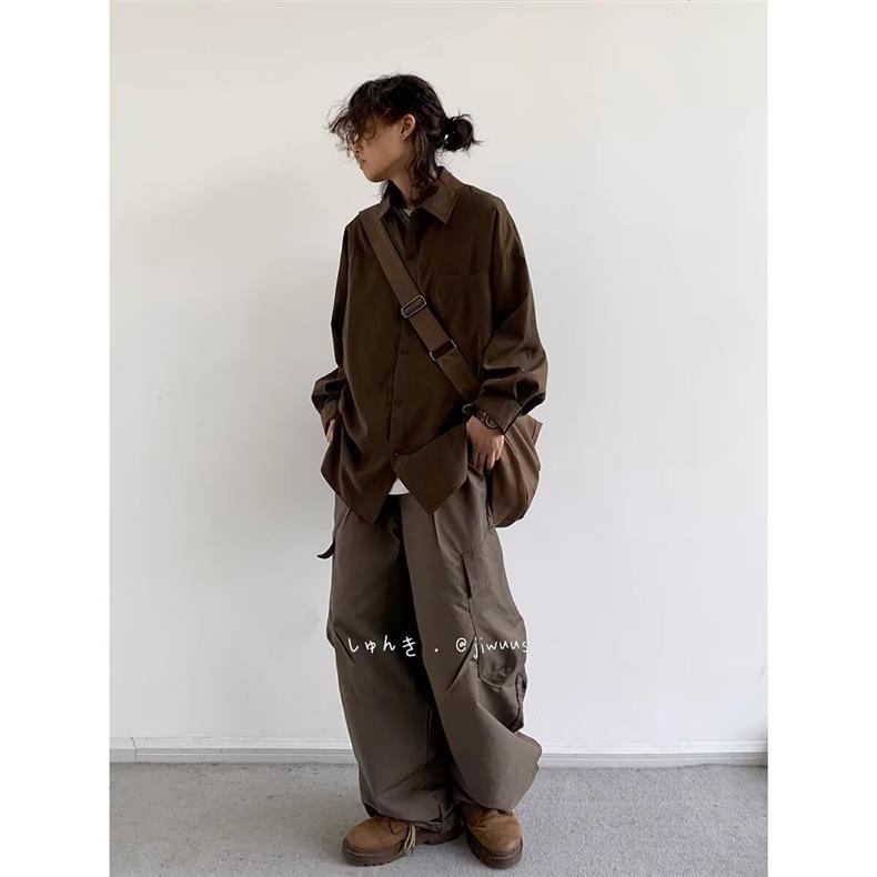 Японская ретро рубашка с длинным рукавом для мужчин, универсальная, свободная, повседневная