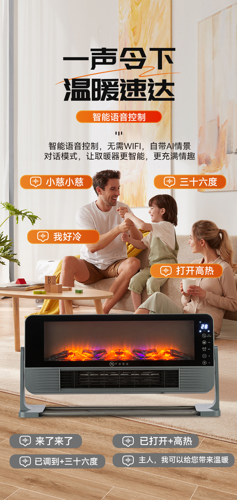 Новый умный голосовой обогреватель, имитация пламени, обогреватель для дома, электрический обогреватель, плинтус