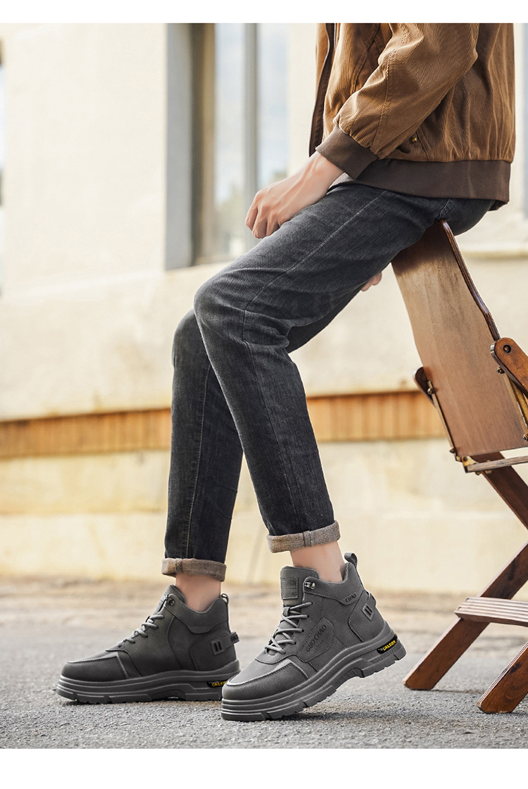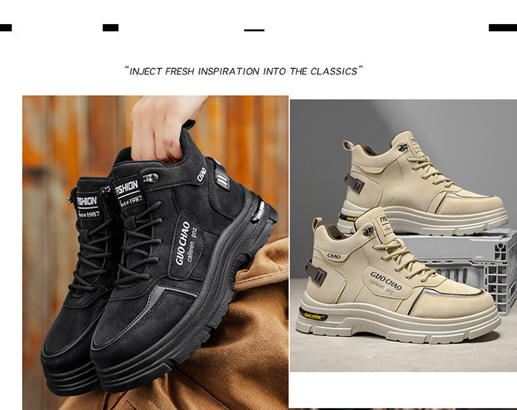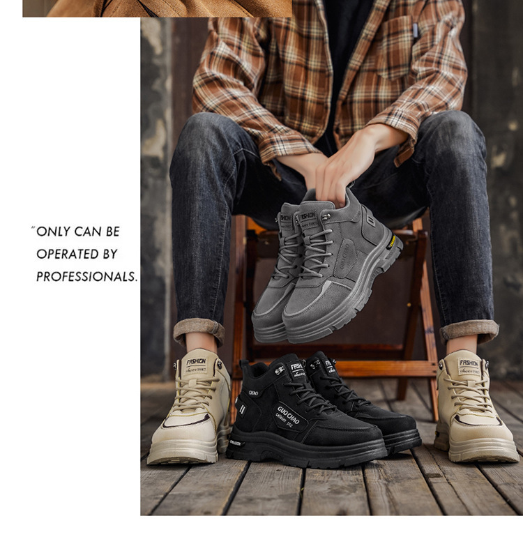 Осенние мужские ботинки Новые дышащие высокие рабочие ботинки Мужские модные универсальные ботинки с толстой подошвой нескользящие повседневные короткие ботинки защитные обувь