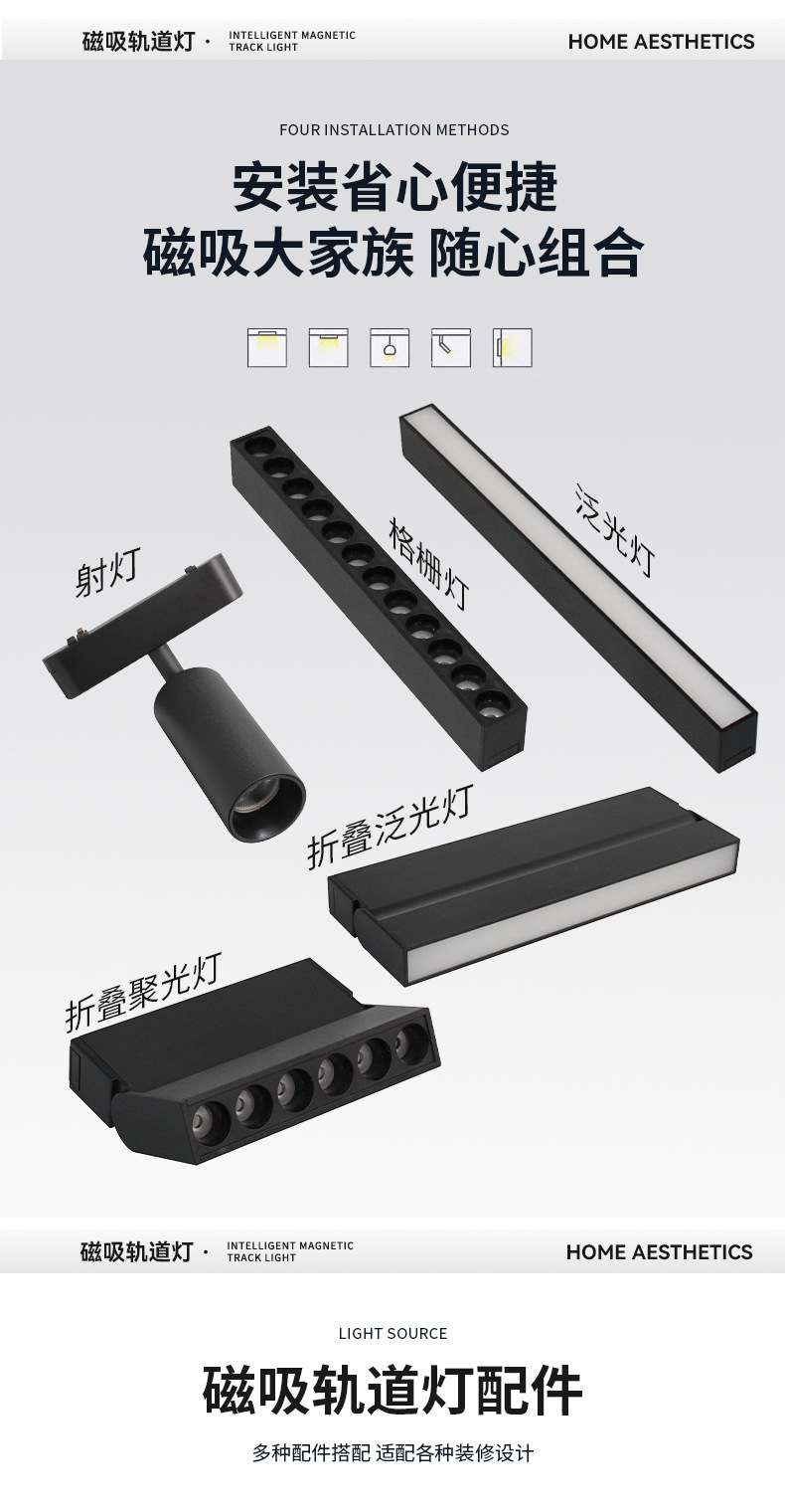 Светодиодный трековый светильник, магнитная полоса, без основного освещения, для домашнего декора, ультратонкий магнитный трековый светильник, настенный монтаж