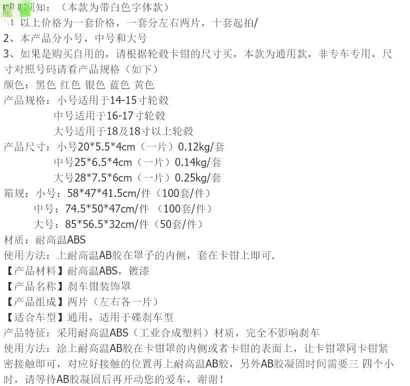 ![]() | Size l (black) - pair of brake caliper covers | ¥46.81 / ≈ 565 ₽ | 84007 | 5940508876381 | |