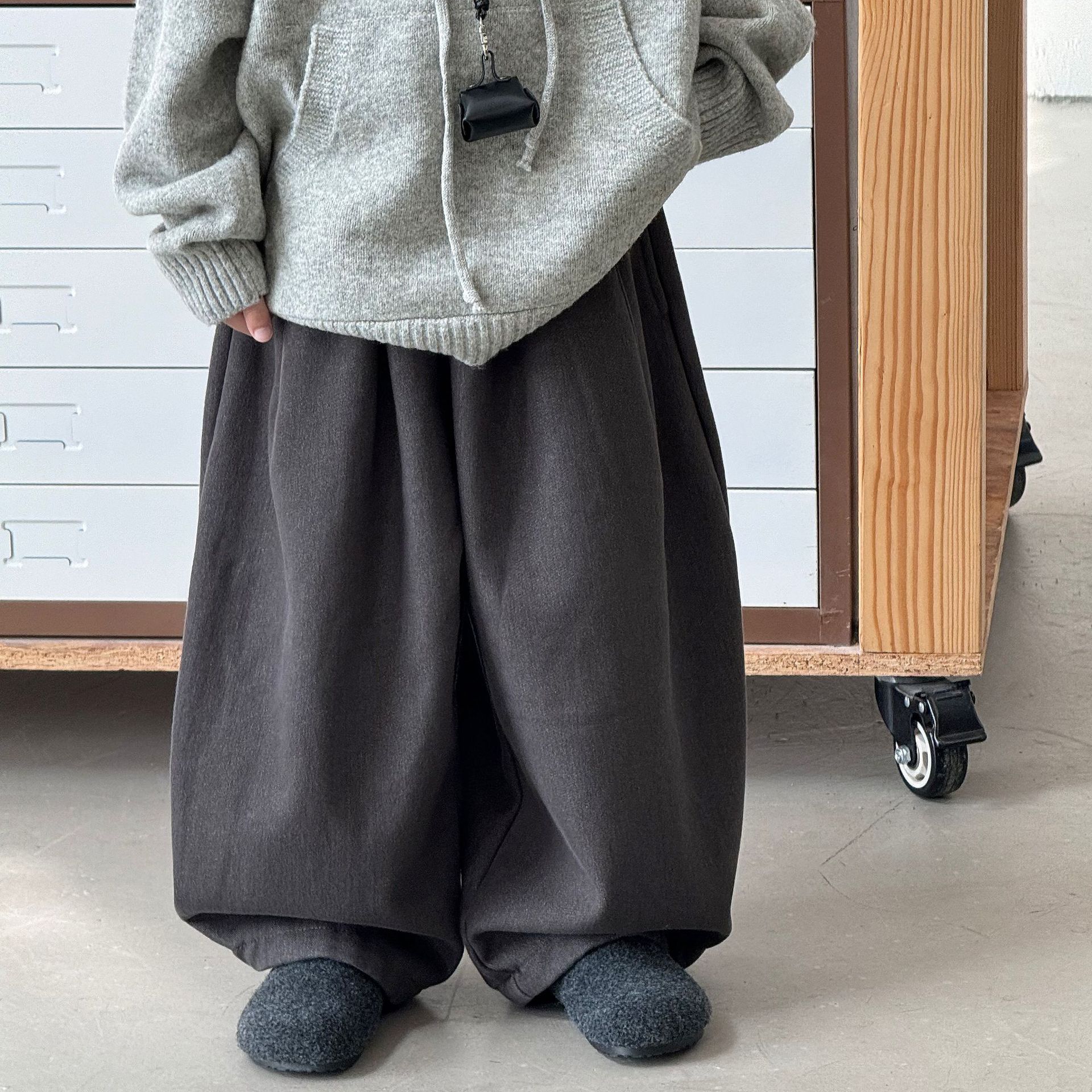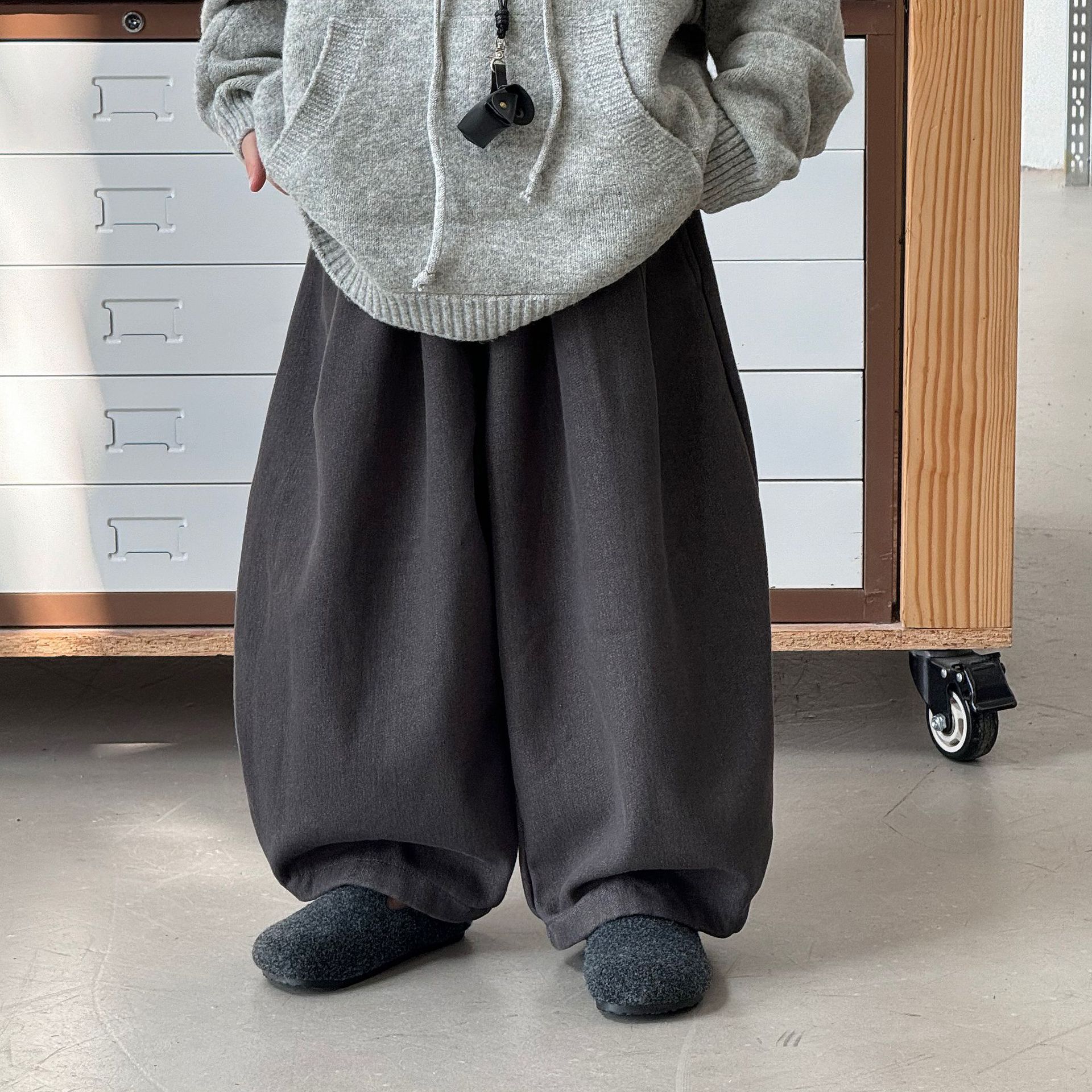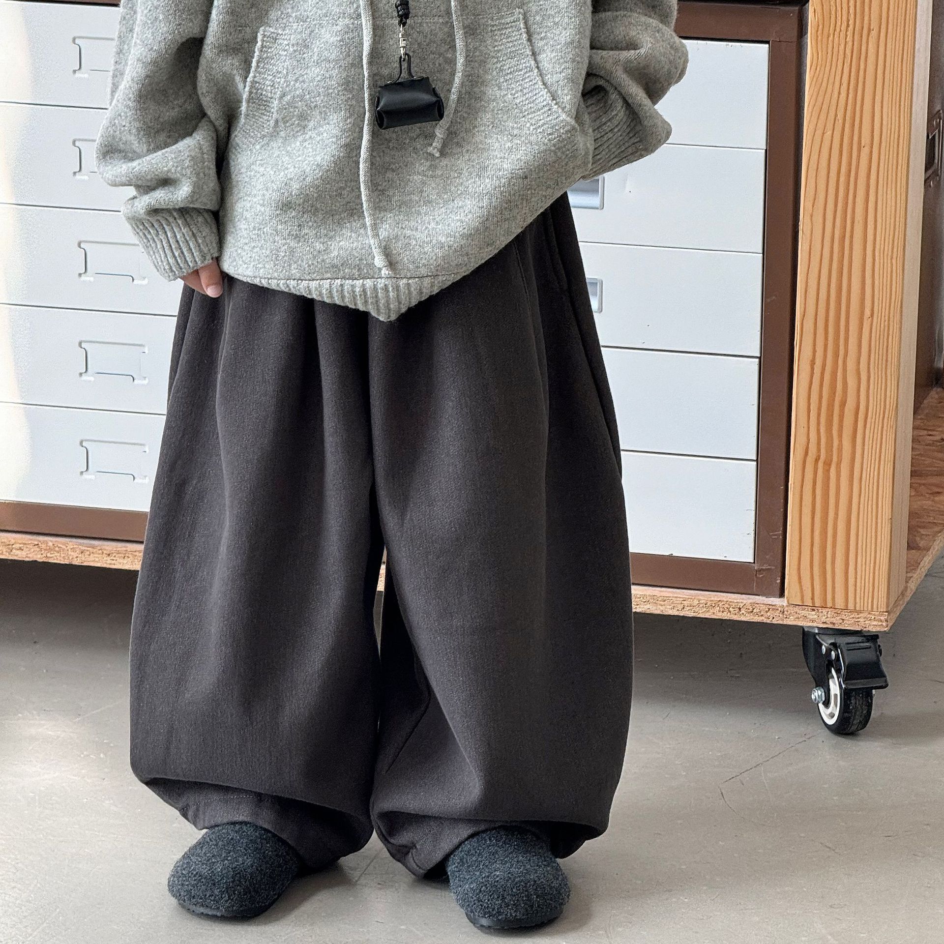 Tai Ru 2025 зимние новые корейские широкие повседневные джинсы для мальчиков однотонные с флисовой подкладкой теплые брюки