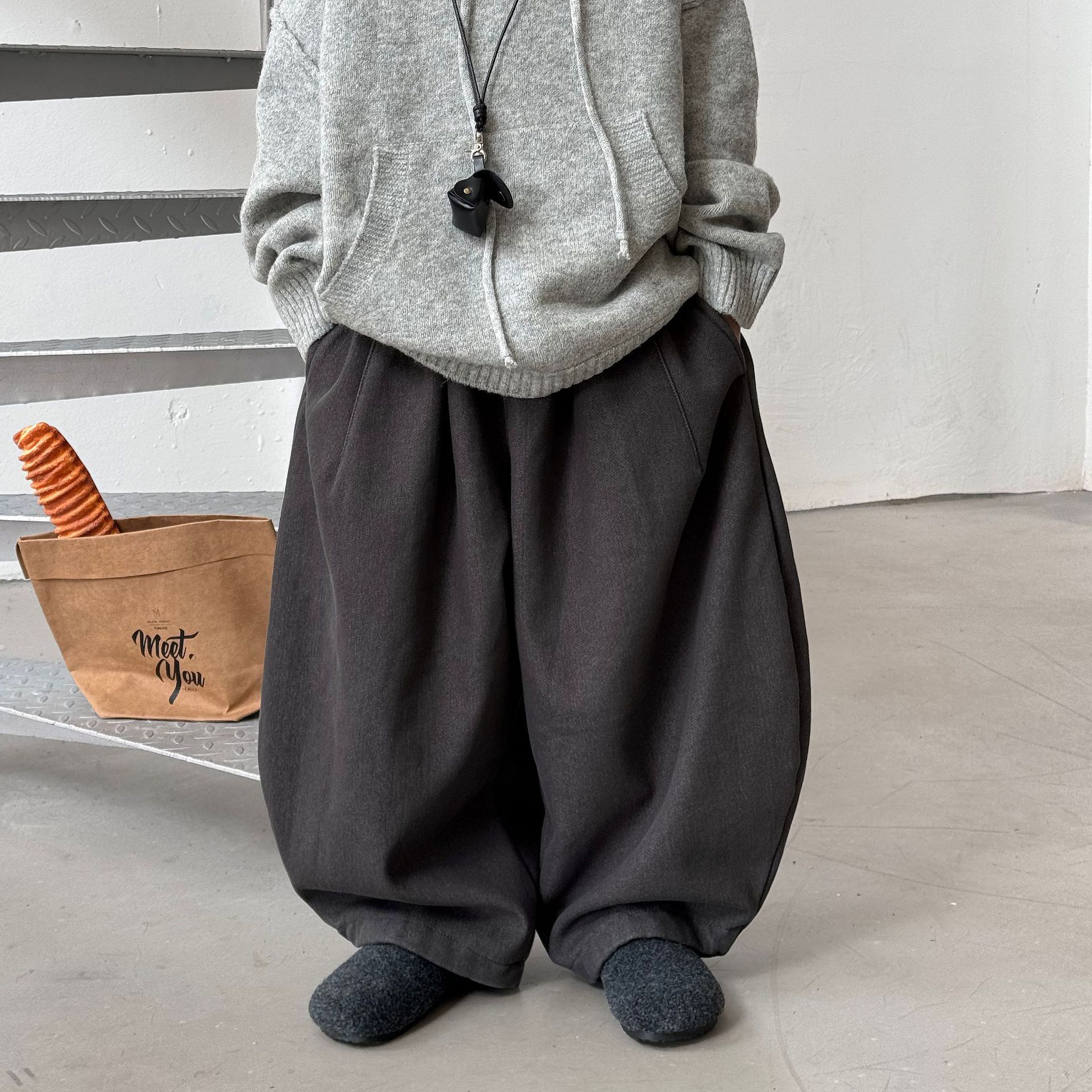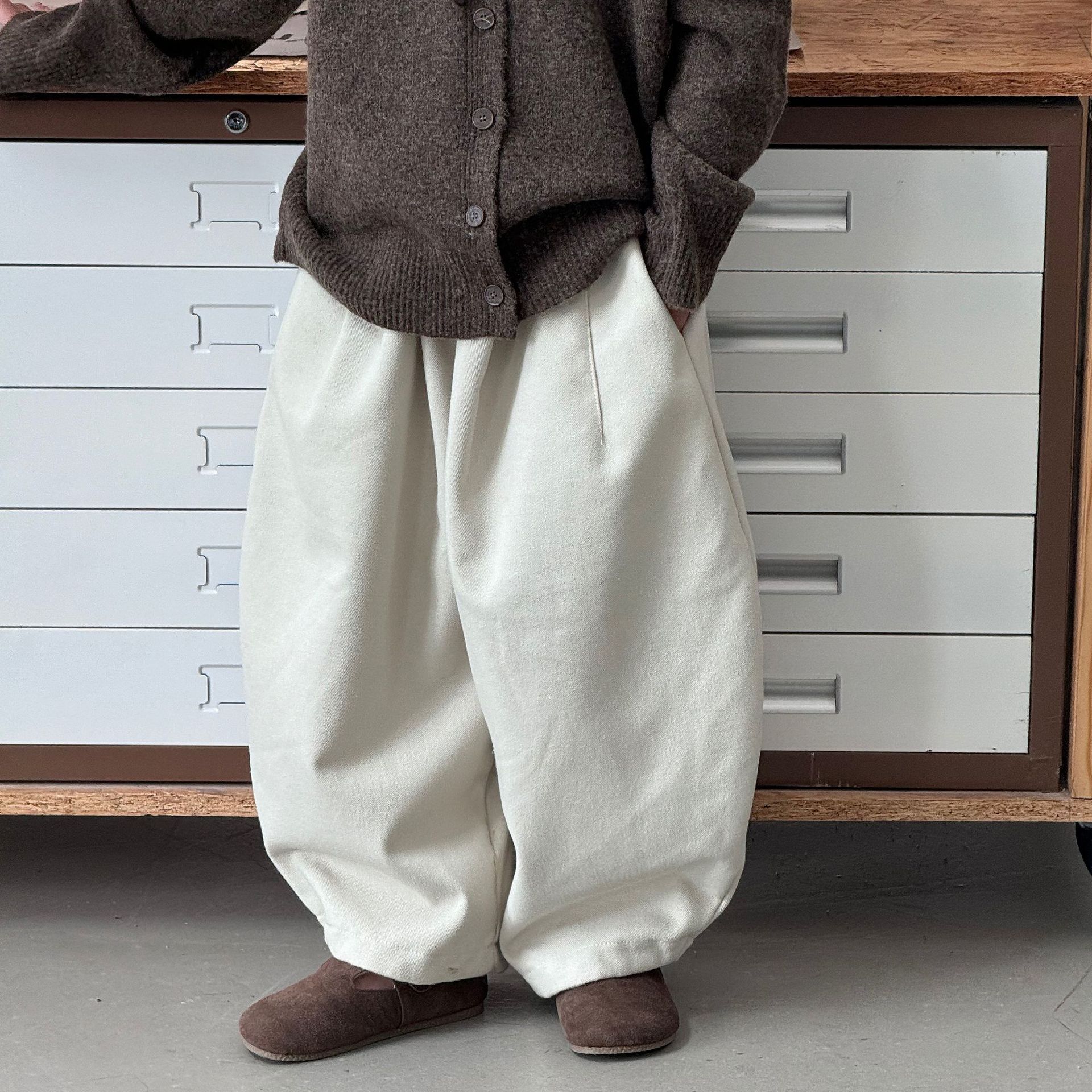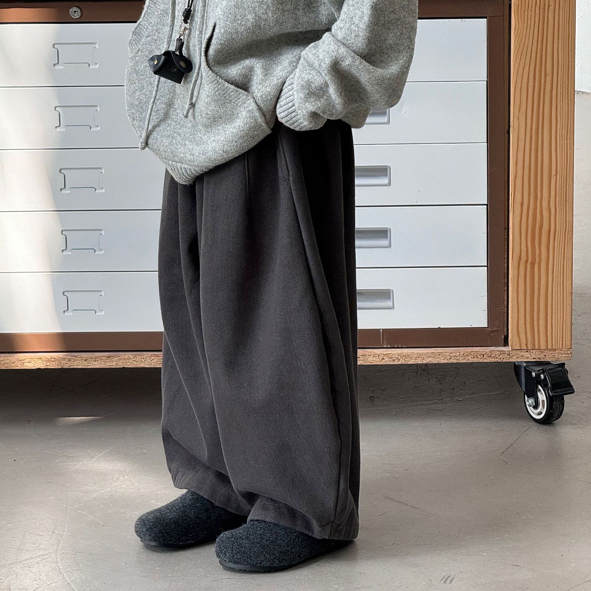Tai Ru 2025 зимние новые корейские широкие повседневные джинсы для мальчиков однотонные с флисовой подкладкой теплые брюки