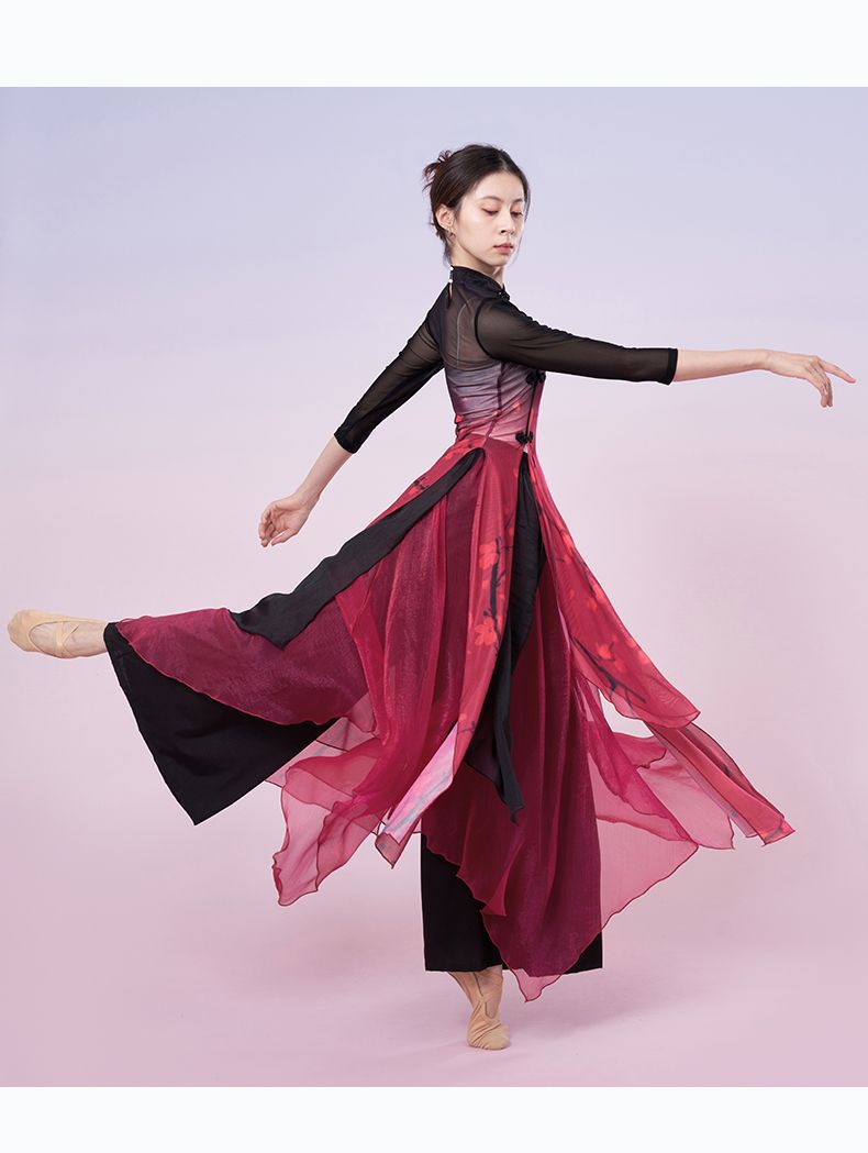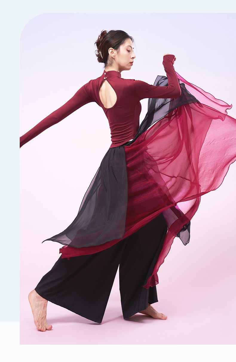 Одежда для практики классического танца, элегантные брюки из газа для женщин, свободные брюки для современного танца, одежда для выступлений народного танца Китая