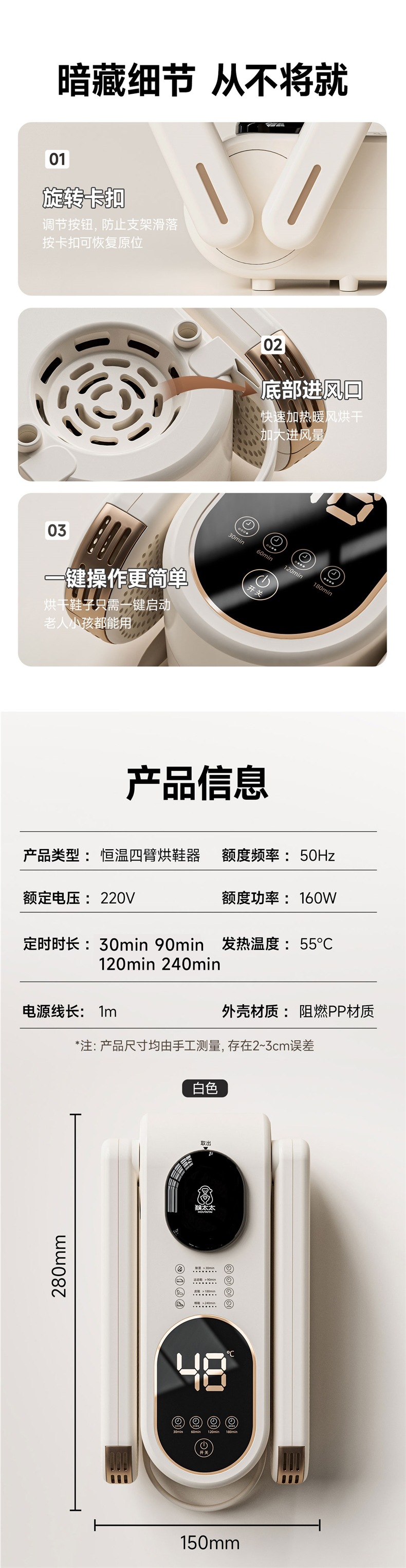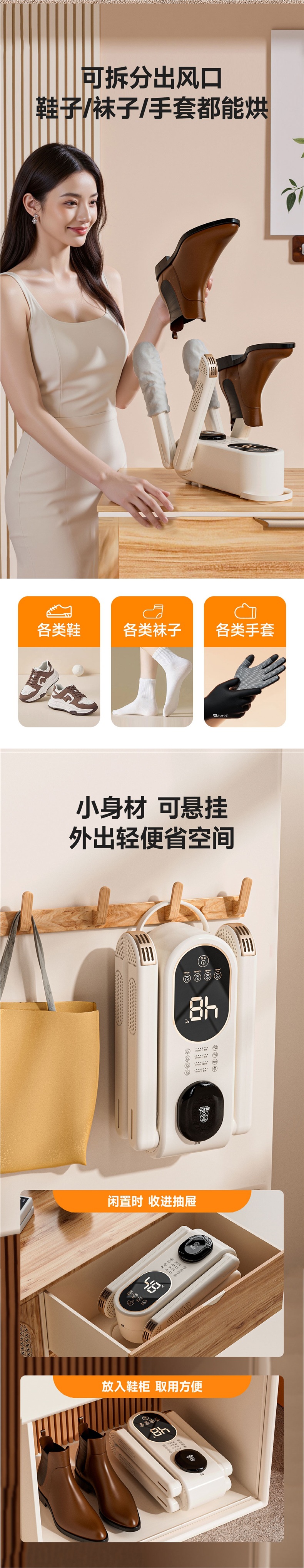 ![]() | Milky white [luxury model/antibacterial] double stand can bake 2 pairs at a time ◆ 360 ° Quick drying throughout the area ◆ Four-speed timing and constant temperature | ¥69.9 / ≈ 842 ₽ | 1476 | 5940573708156 | |