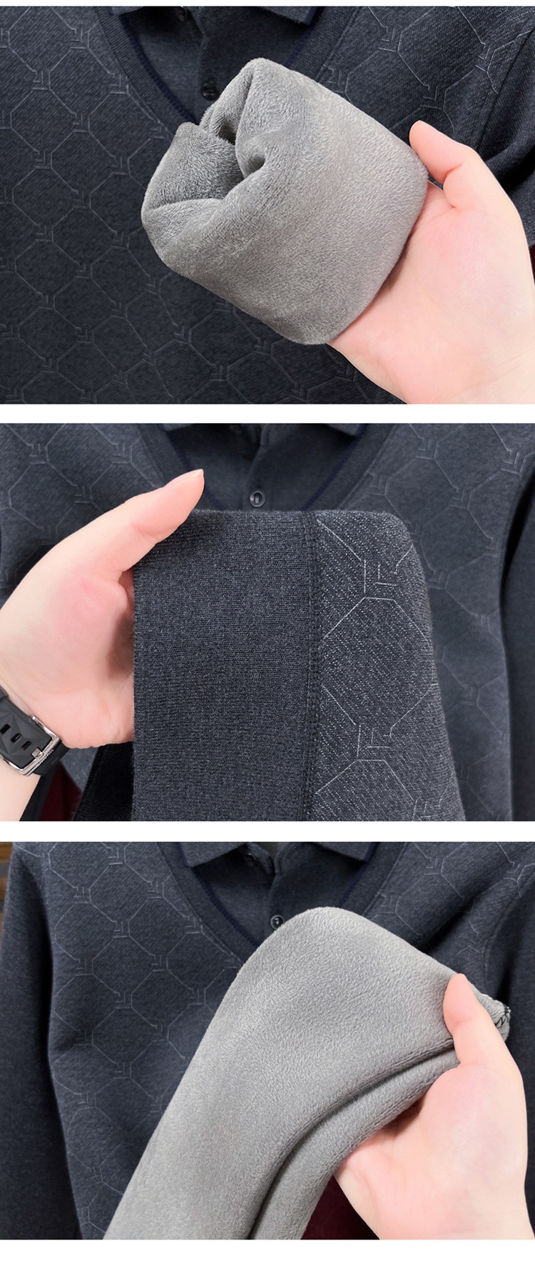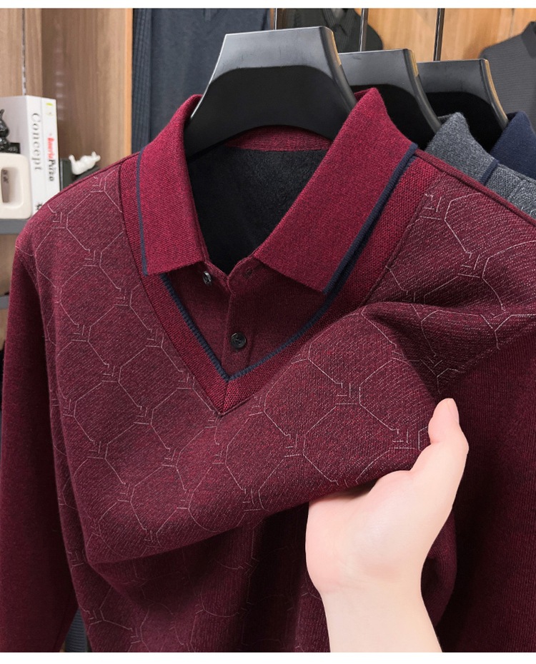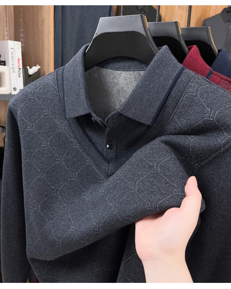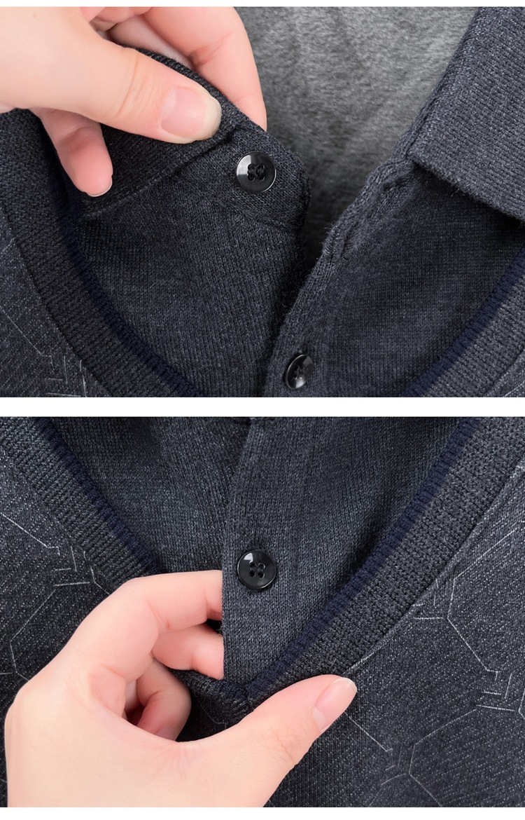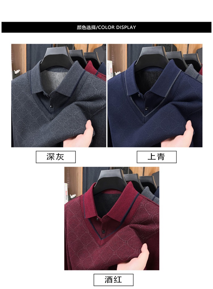 зимний свитер с флисовой подкладкой, утолщенный, для мужчин, повседневный, с отложным воротником, фейковый двукомпонентный теплый базовый свитер для мужчин среднего и пожилого возраста