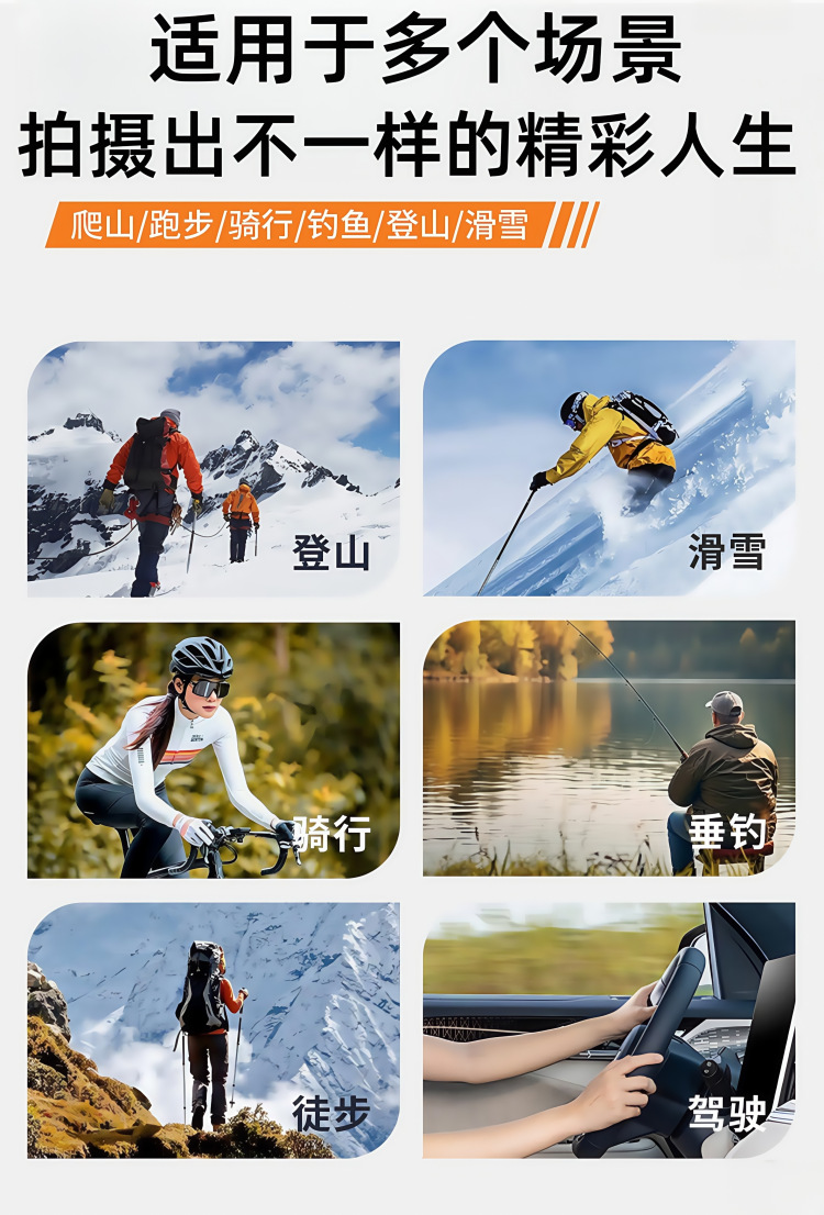 · 沉浸式视角: 120°广角镜头带来广阔、沉浸式的画面,完美捕捉骑行、运动或风景徒步的激动人心。