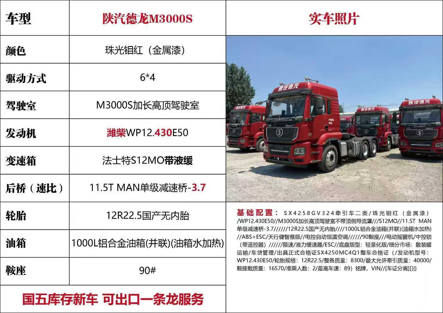 Внешняя торговля, тягач Shaanxi Automobile Delong M3000, 460 л.с., шины 90% новые, полуприцепный тягач