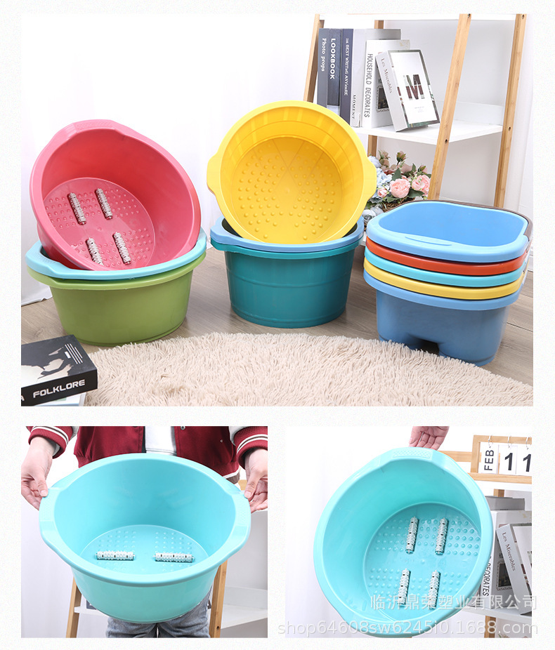 Пластиковое ведро для ванны для ног, утолщенное, сумочное, на четырех колесах, для дома, круглое, с выпуклыми точками, рекламная напечатанная чаша для ванны