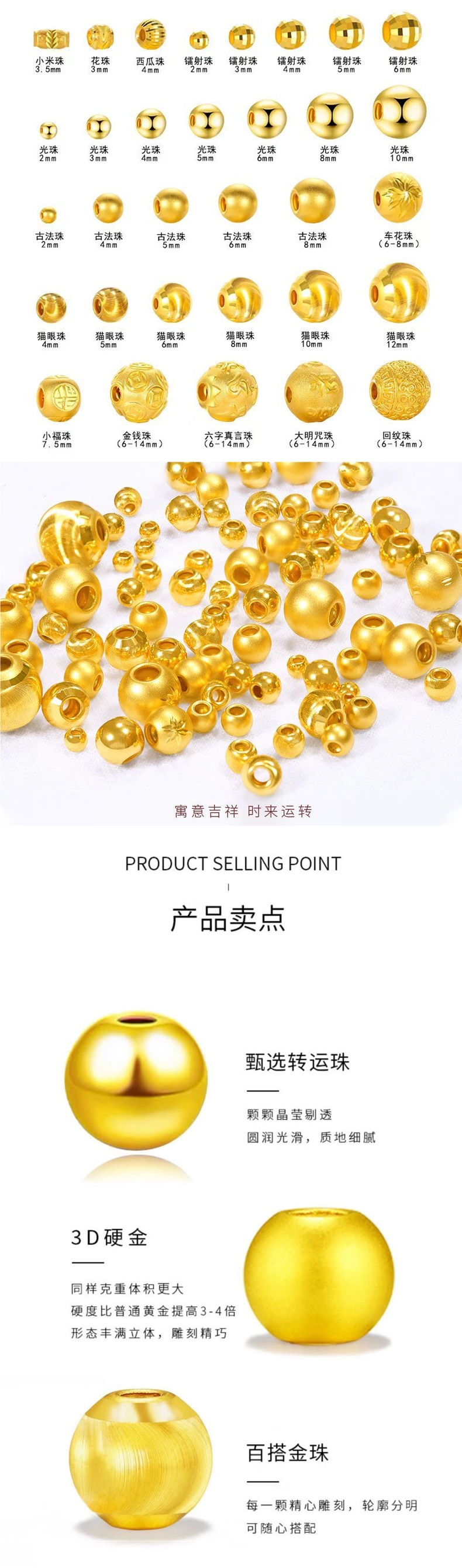 Чистое золото 999, неправильные бусины, круглые золотые бусины, бусины Будды, легкие аксессуары, разделительные бусины, браслет с бусинами, древнее золото