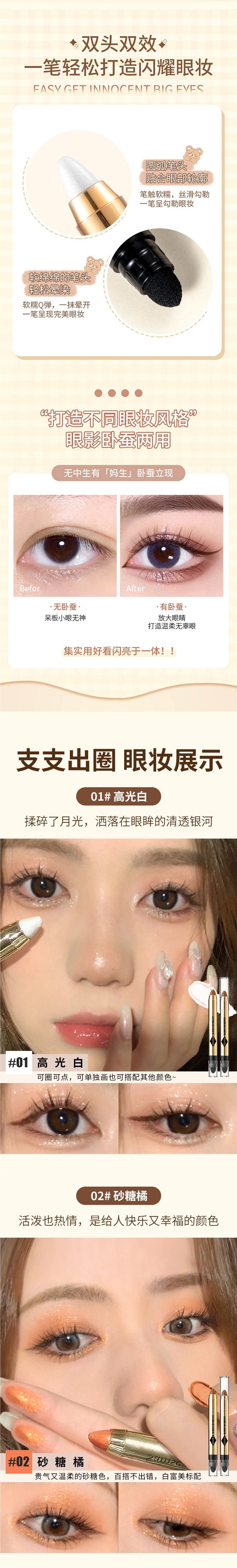 Новый ленивый карандаш для теней с высоким блеском, двусторонний карандаш-шелкопряд, водостойкий, перламутровый, для студентов