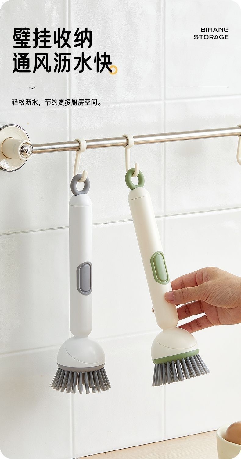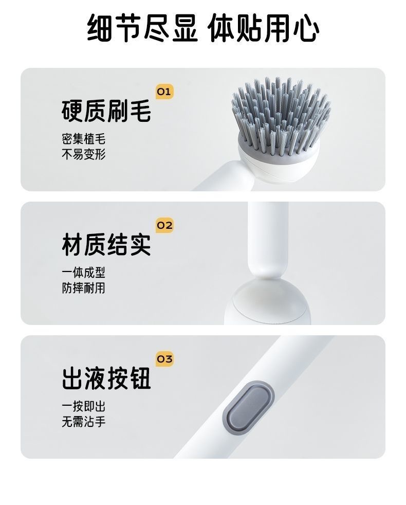 Многофункциональная вращающаяся чистящая щетка, с функцией нажатия и добавления жидкости, длинная ручка, без грязных рук, без повреждений посуды, для мытья посуды и кастрюль