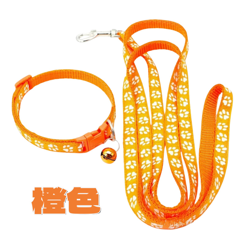 Ошейник с отпечатками лап для кошек и щенков, для прогулок с кошками, предотвращает разрыв, ошейник для котят, с колокольчиком, регулируемая веревка