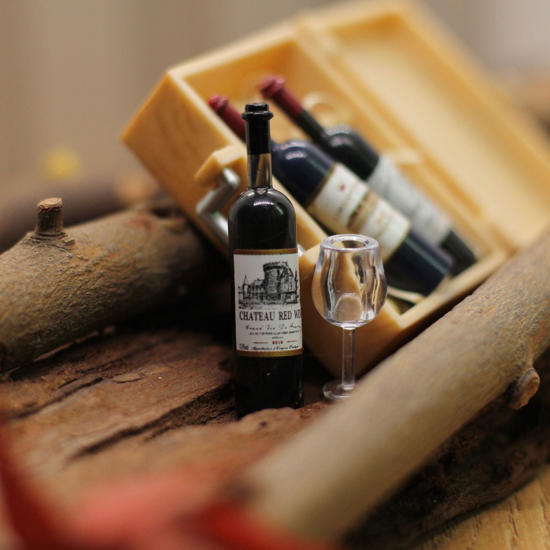 Аксессуары для кукольного домика, мини-игрушка с едой, красное вино в бокале, игрушка для ролевых игр, декор с бутылкой красного вина