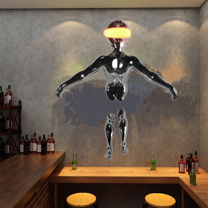 Современные украшения, настенное подвесное украшение в виде робота с подсветкой, для баров и клубов