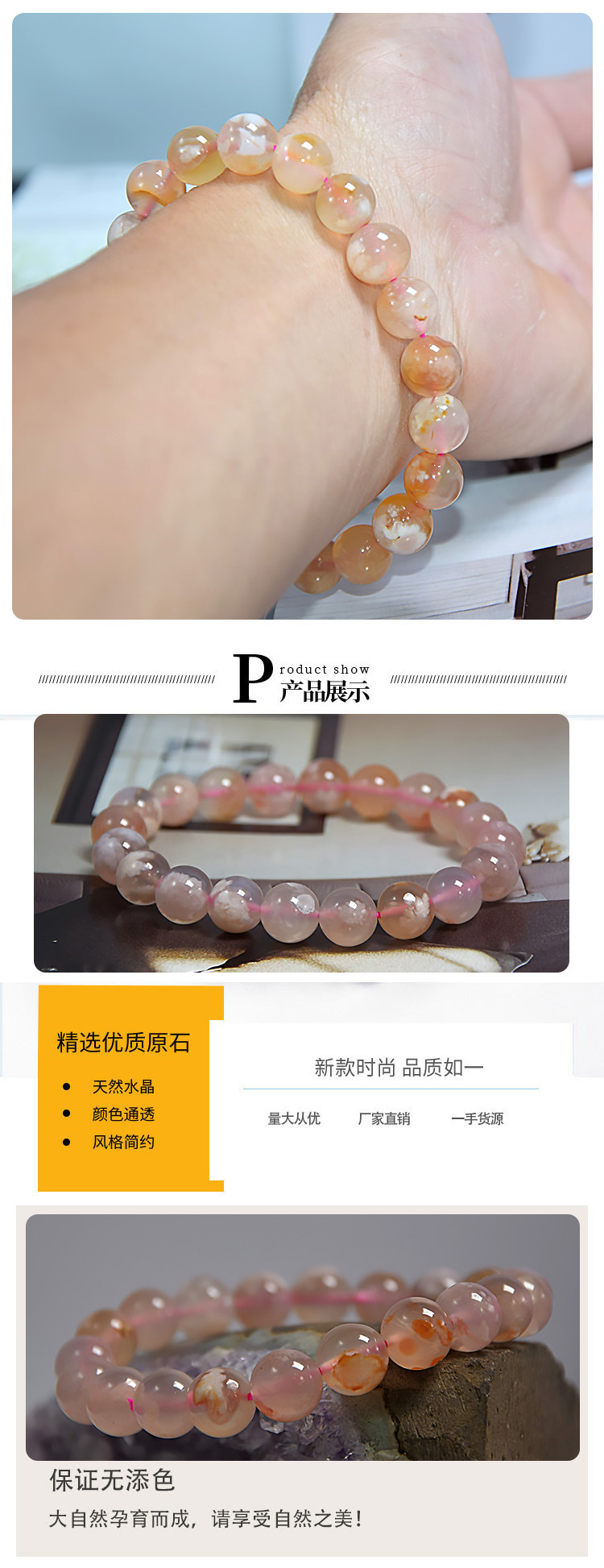 Браслет из натурального агата с цветами сакуры, розовый агат, браслет для DIY, модные универсальные украшения, оптовая продажа от производителя