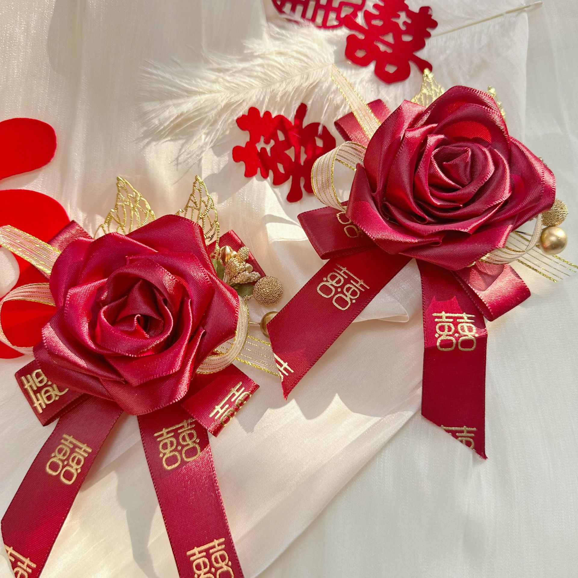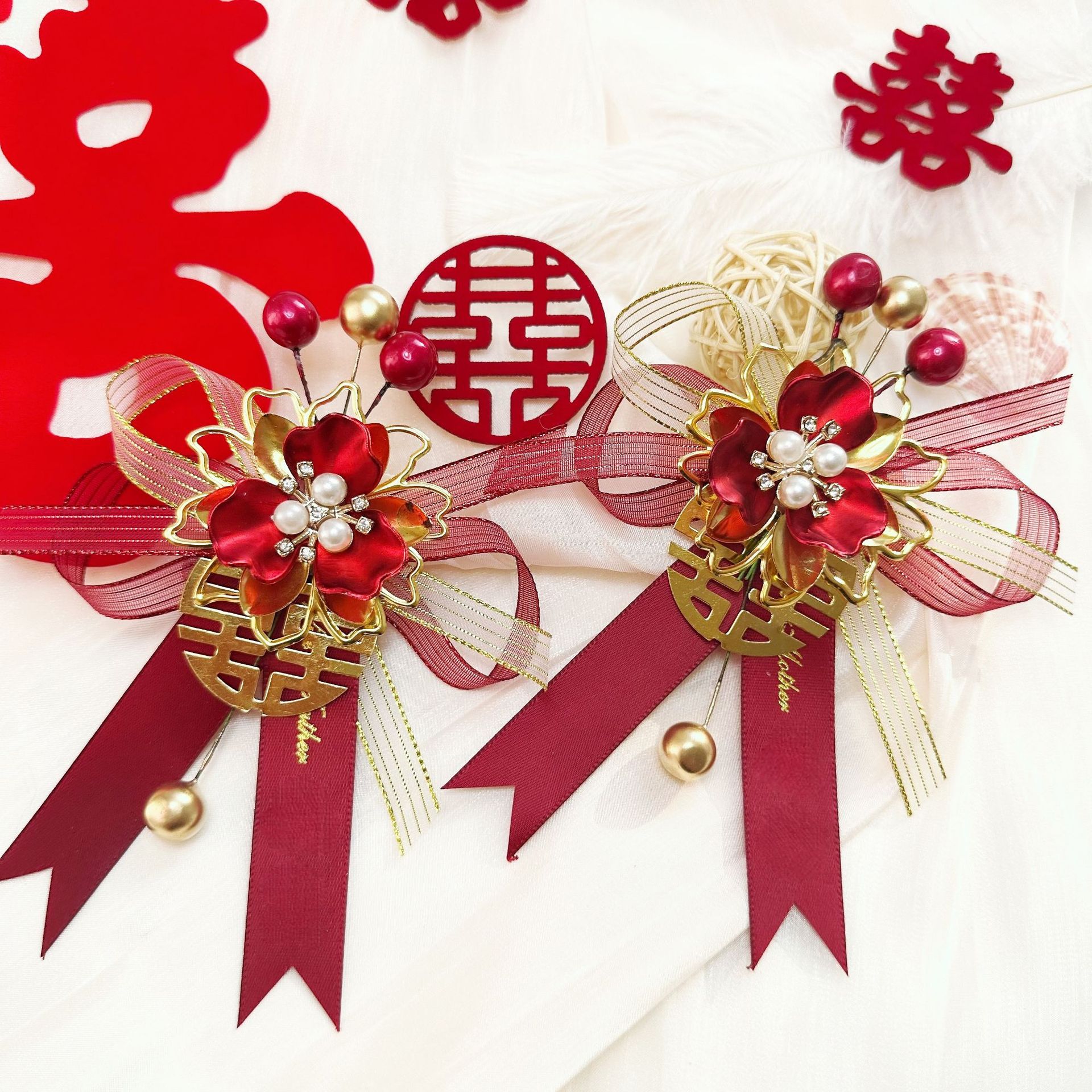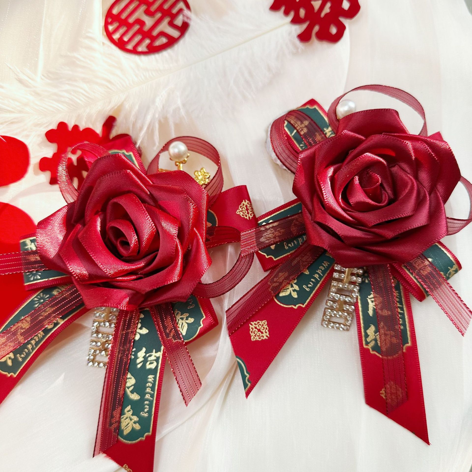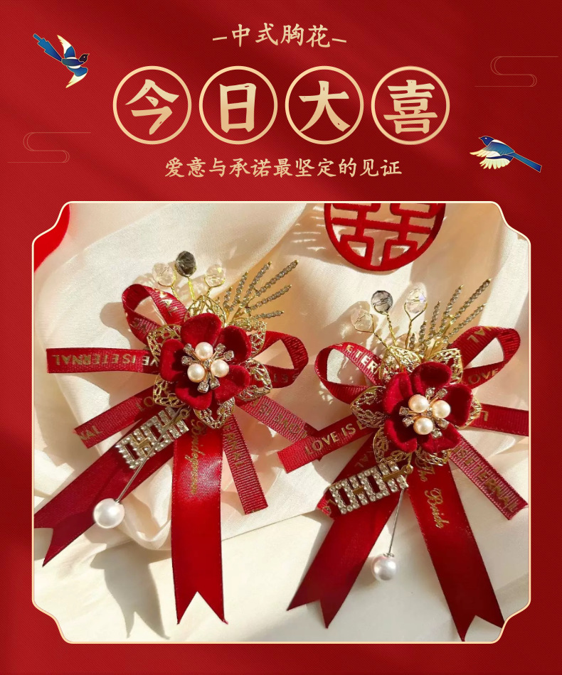 Новый китайский свадебный корсаж для невесты и жениха, полный комплект свадебного платья с лентами, свадебный комплект для отца, матери, шаферов и подружек невесты