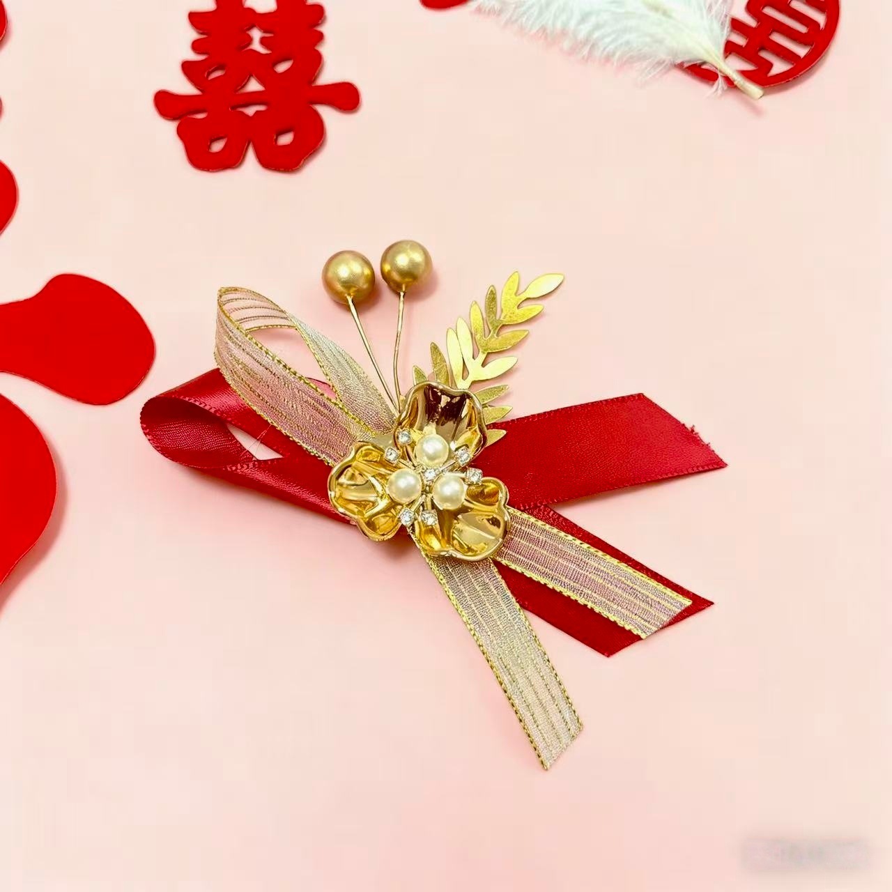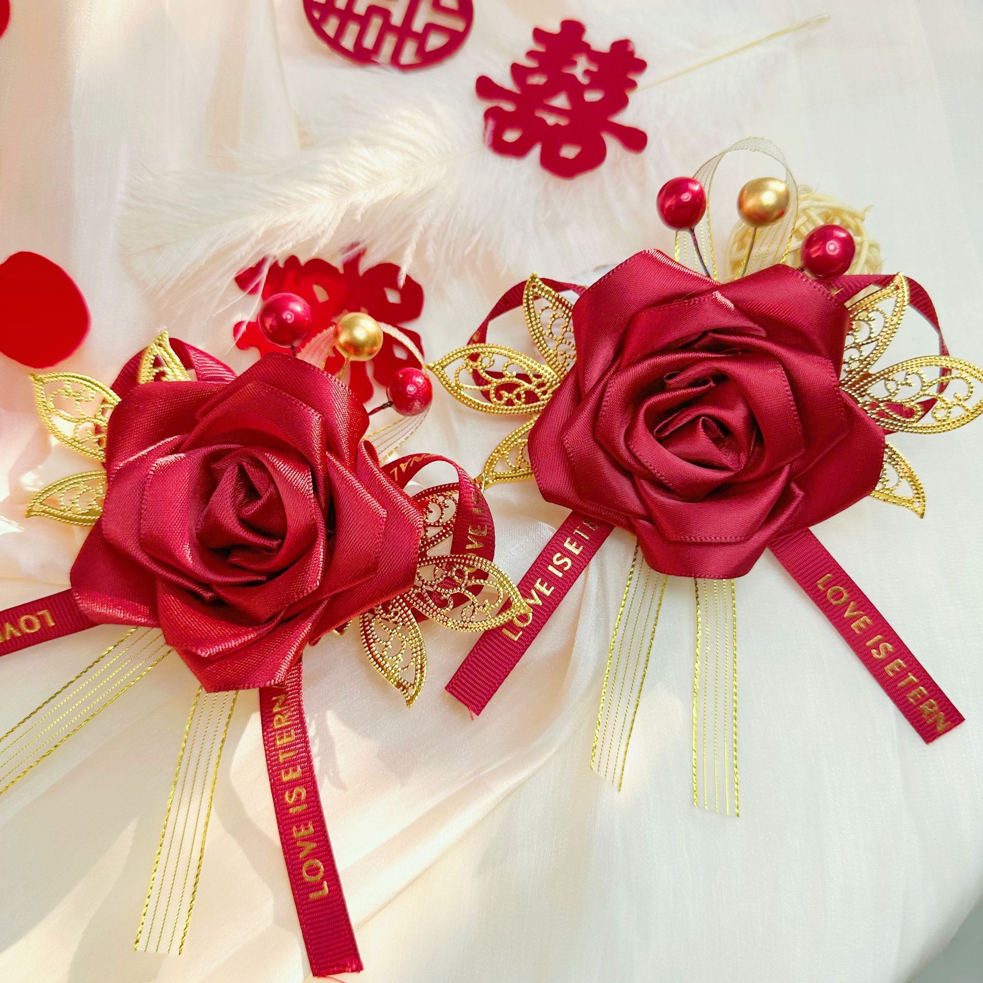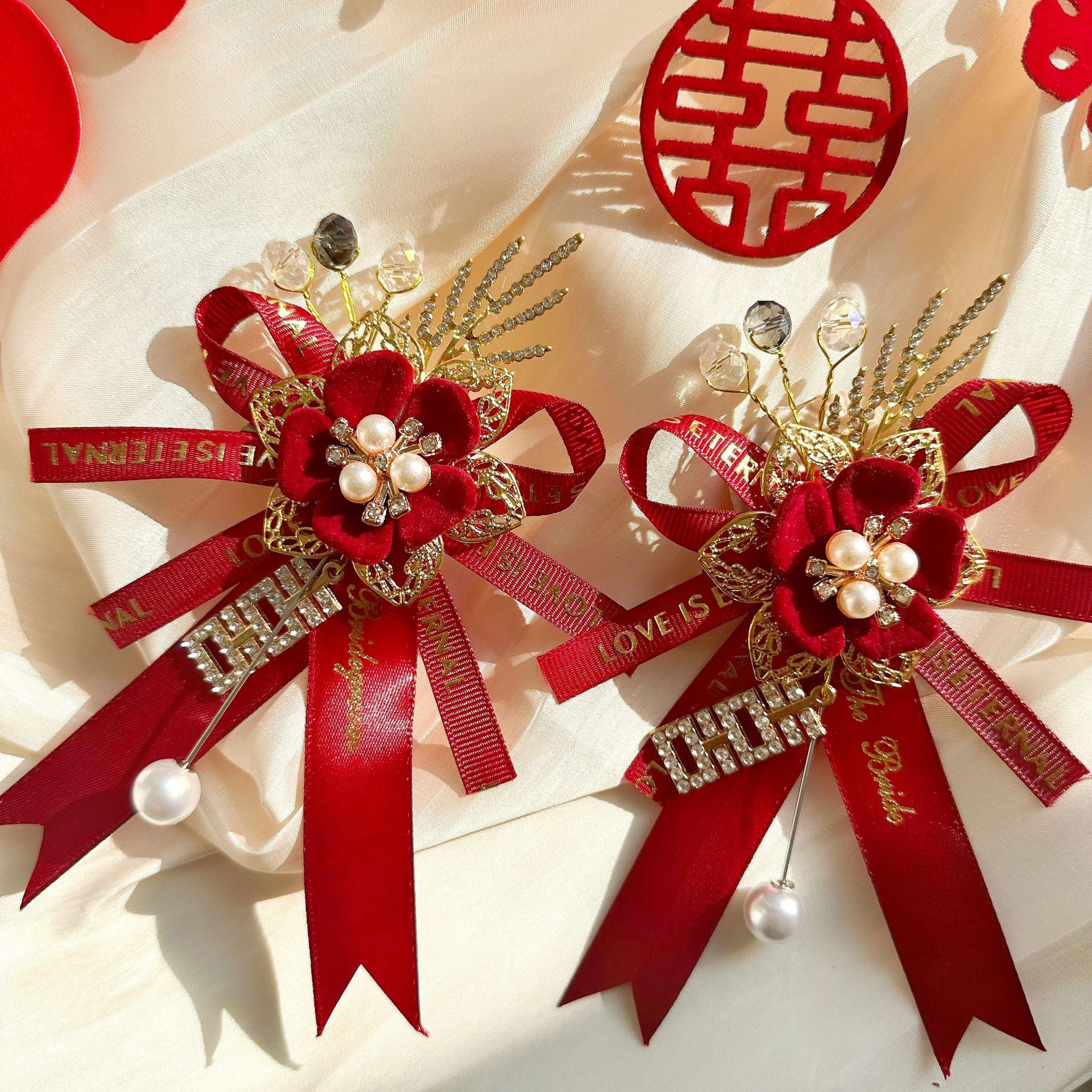 Новый китайский свадебный корсаж для невесты и жениха, полный комплект свадебного платья с лентами, свадебный комплект для отца, матери, шаферов и подружек невесты
