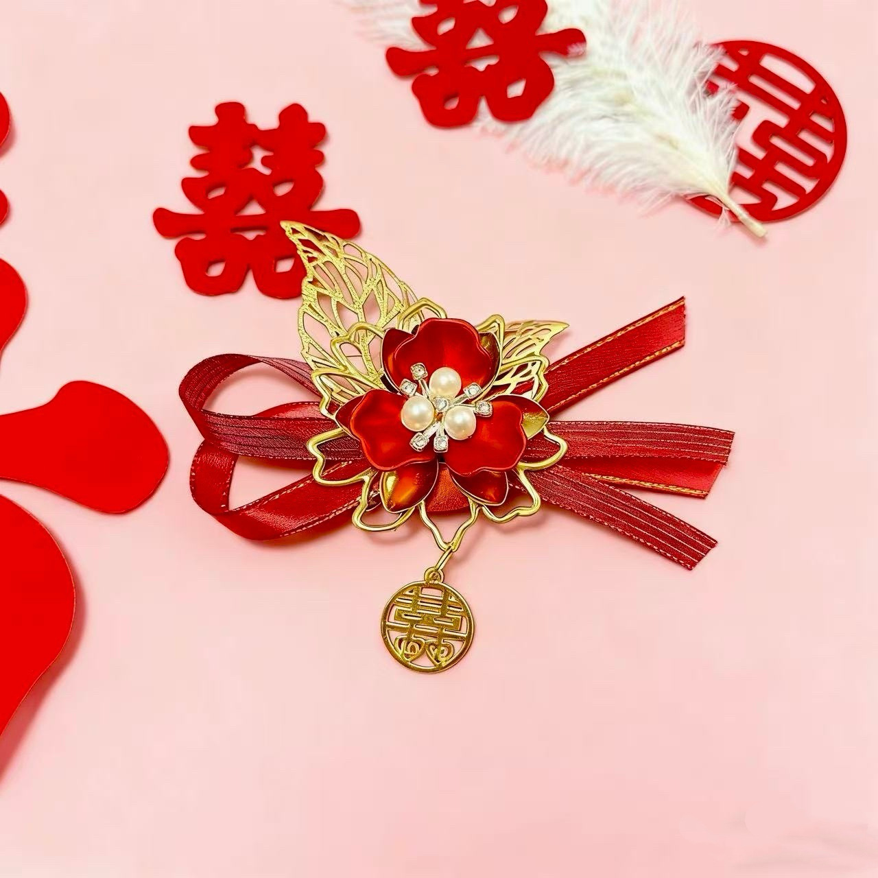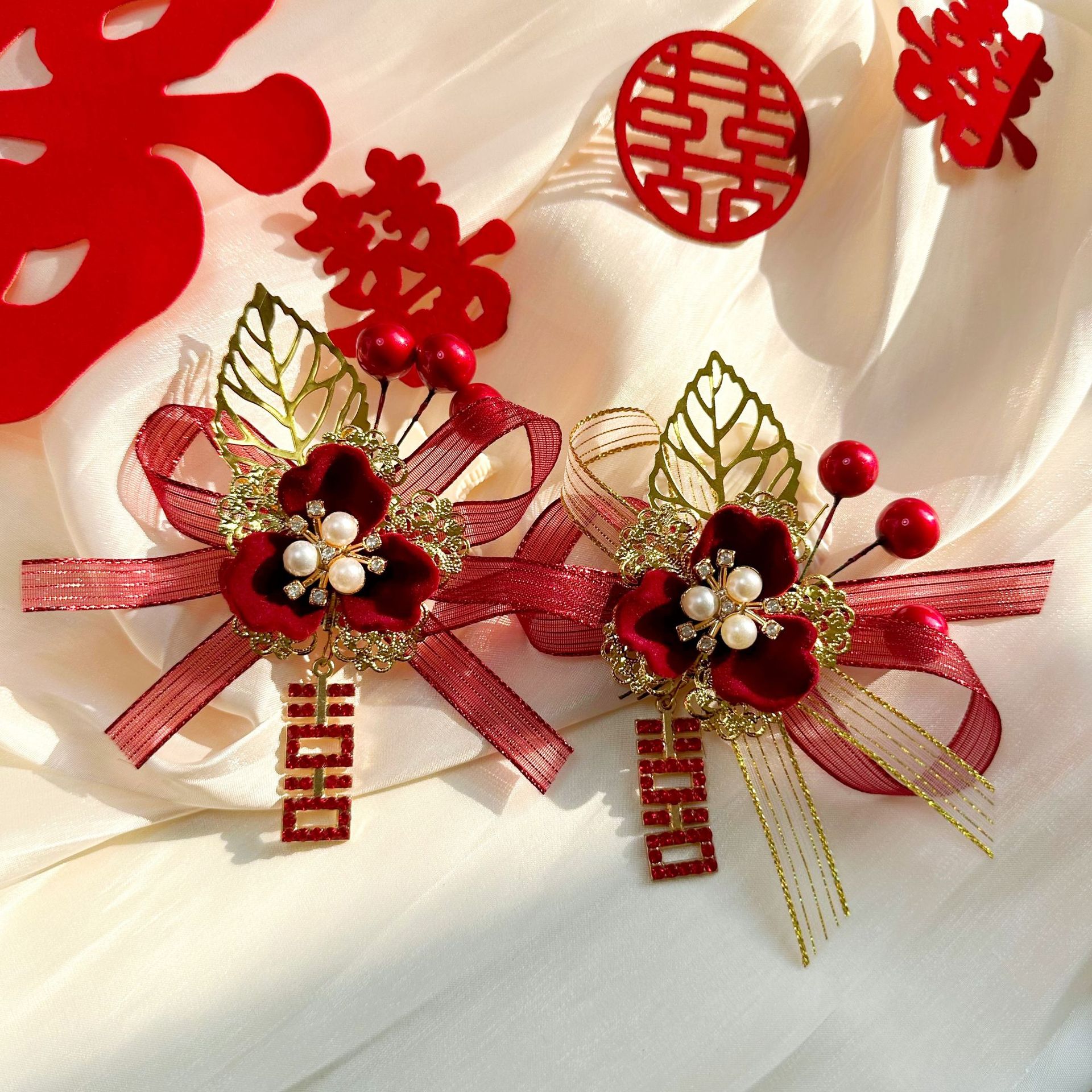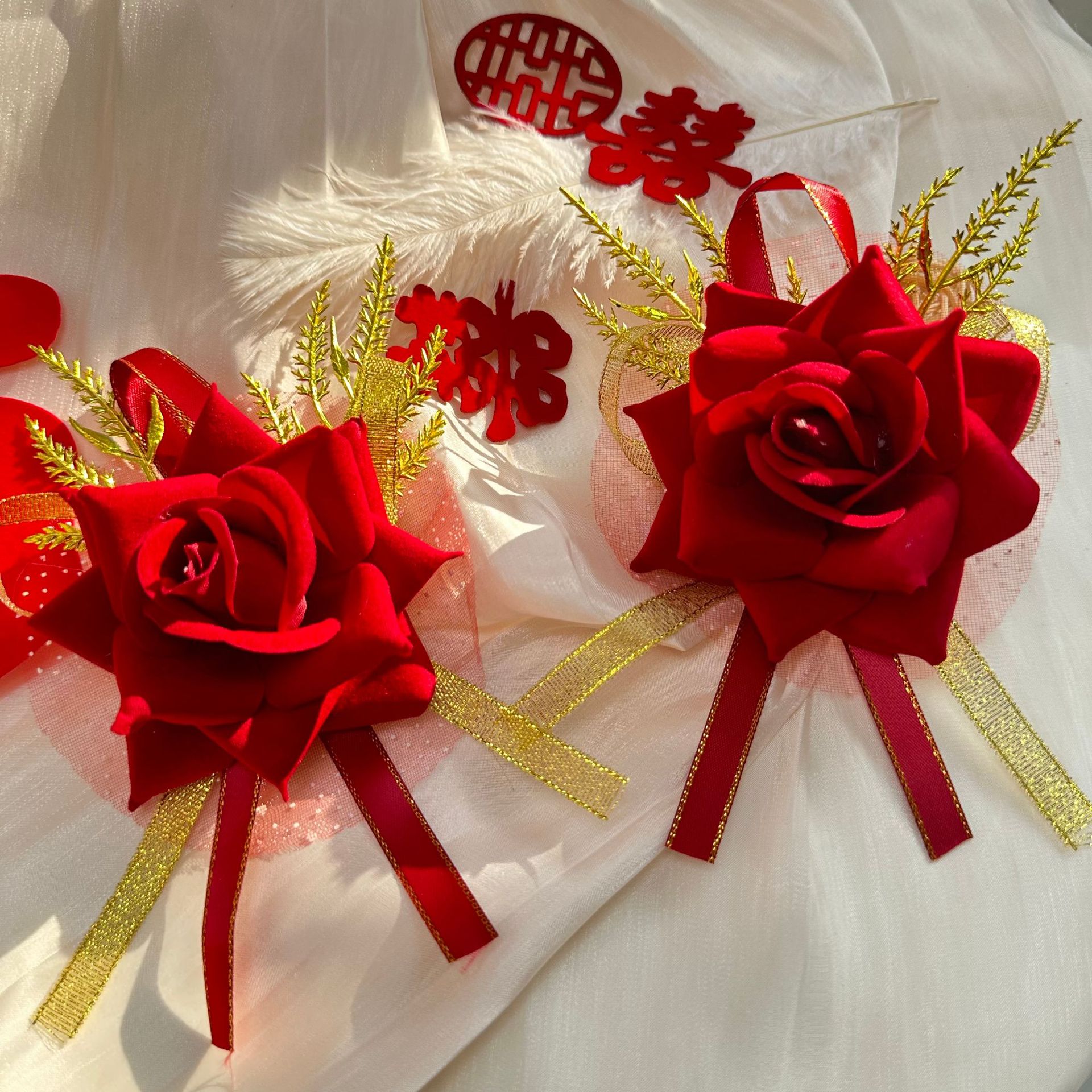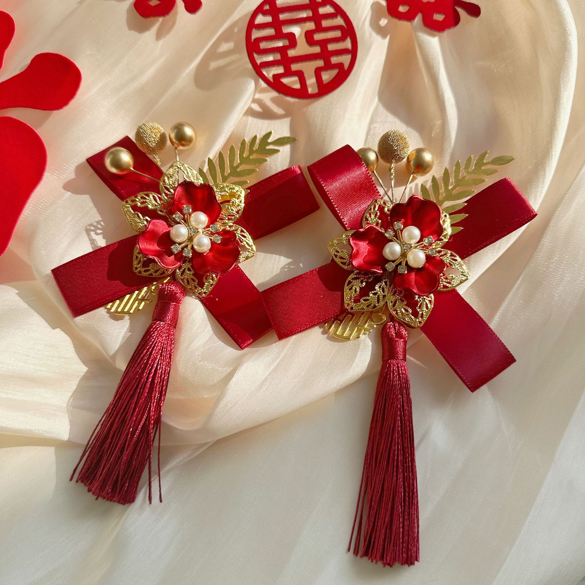 Новый китайский свадебный корсаж для невесты и жениха, полный комплект свадебного платья с лентами, свадебный комплект для отца, матери, шаферов и подружек невесты