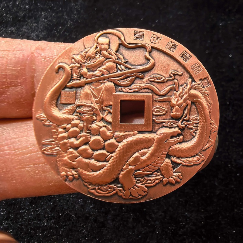 Латунная solid красная медь горный дух цветочный узор, император Чжэнву, рельефный горный дух монета подвеска