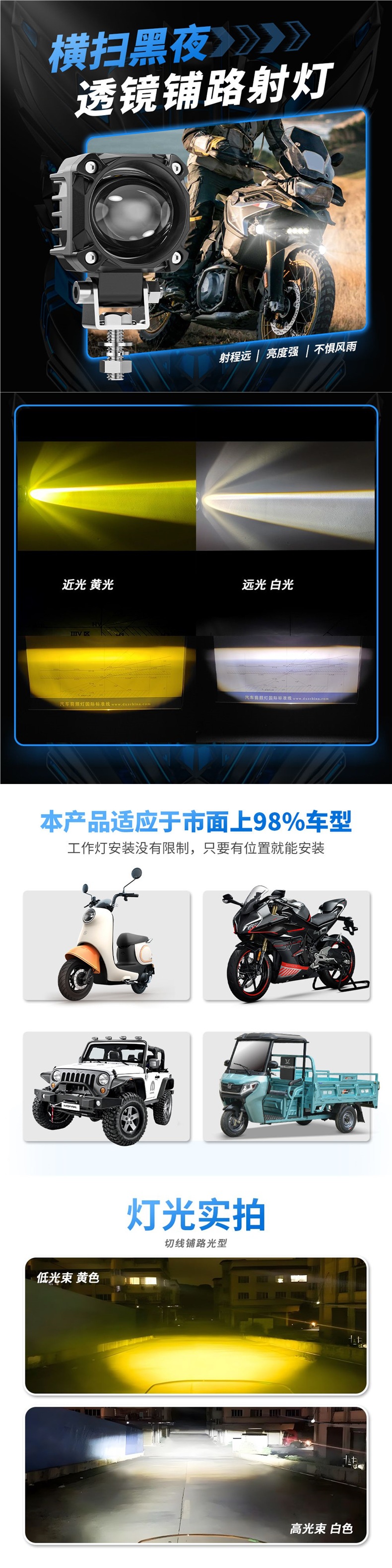 Светодиодный фонарь для электрического мотоцикла уличный свет дальнего и ближнего света внешний фонарь водонепроницаемый вспомогательный лазерный свет