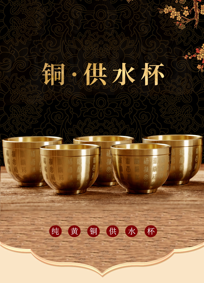 Медная чаша для воды для подношений, чаша для вина бога богатства для домашнего использования, чаша для подношений на стол, чаша для подношений на алтаре Будды, маленький размер