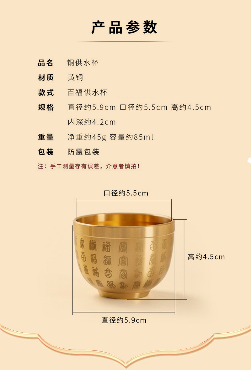 ![]() | Large size - brass baifu cup [pack of 5, free five emperors money] | ¥22.7 / ≈ 269 ₽ | 99999 | 6106663539636 | |