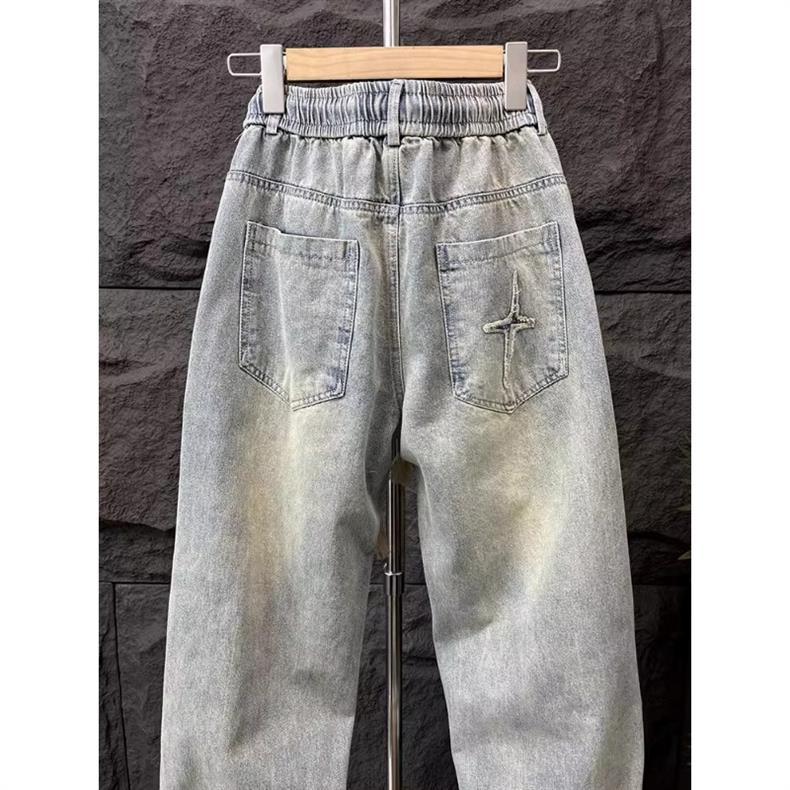 Американские ретро потертые вышитые джинсы мужские модные уличные широкие прямые брюки мужские длиной до пола